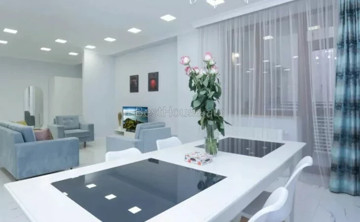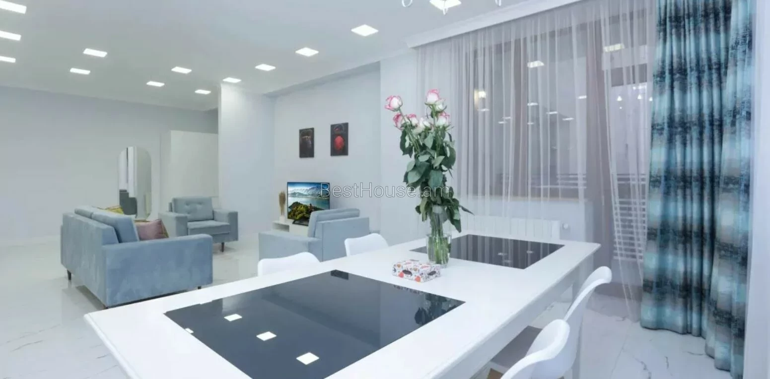 Վարձակալության է տրվում լուսավոր հագեցված գույքով և տեխնիկայով, 4 սենյականոց բնակարան նորակառույց շենքում Արամի փողոցում, 140 ք.մ. 2 սանհանգույց, բնակարանը հագեցված է անրաժեշտ գույքով և տեխնիկայով։