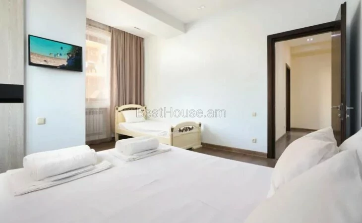 Տրվում է վարձով հարմարավետ լուսավոր 3 սենյականոց բնակարան նորակառույց շենքում Մեսրոպ Մաշտոցի պողոտայում, 120 ք.մ բնակարանը հագեցված է գույքով և տեխնիկայով։