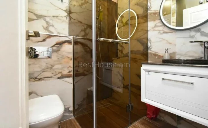 Ունի սանհանգույց, որը պատված են եվրոպական արտադրության սալիկներով, հագեցած սանտեխնիկայով: