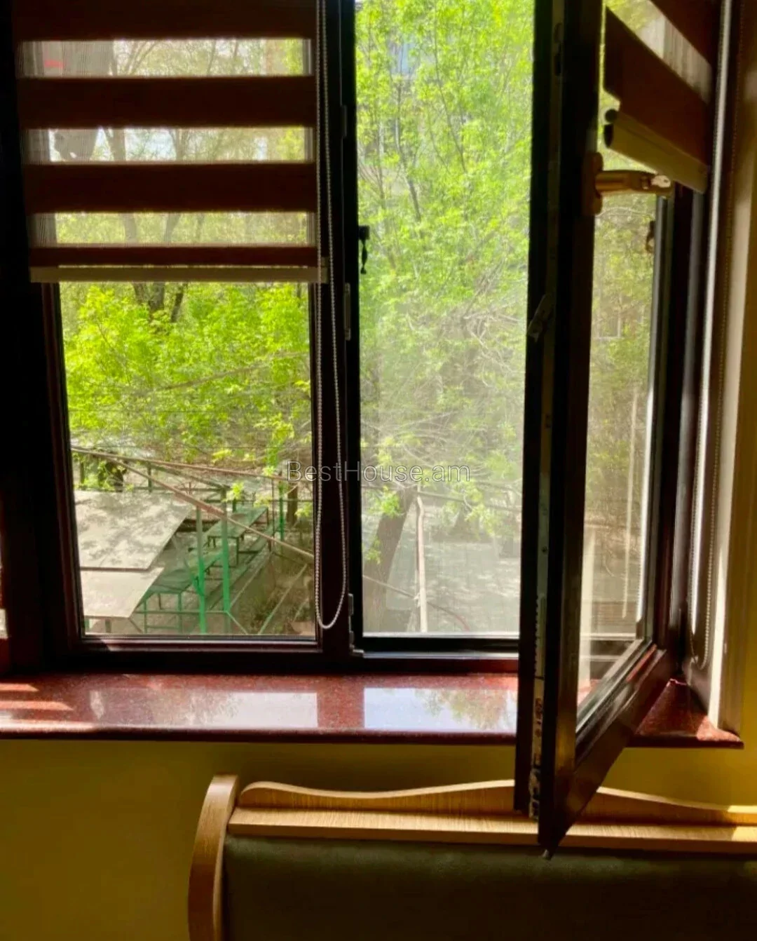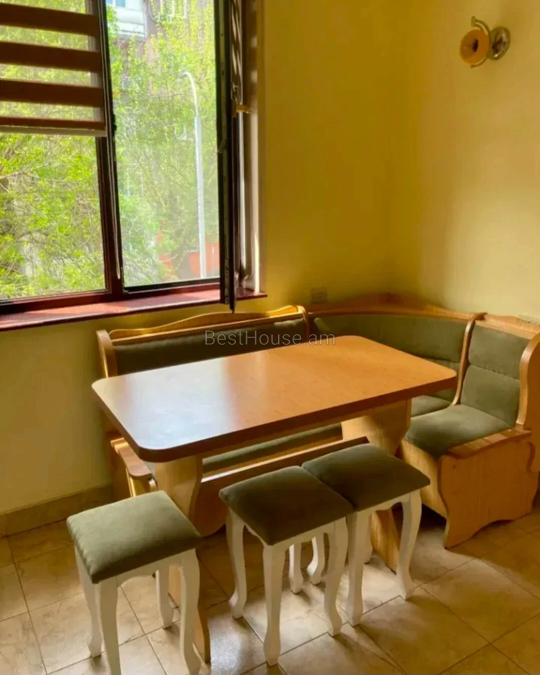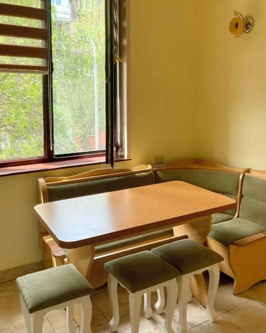 Բնակարանը ունի հարմարավետ դասավորություն։ 2 ննջասենյակները բաժանված են ճաշասենյակից և խոհանոցից։ Խոհանոցը և ճաշասենյակը նայում են դեպի բակ՝ գեղեցիկ ծառերով։ Բակում կա մանկական և ֆուտբոլի խաղահրապարակ։