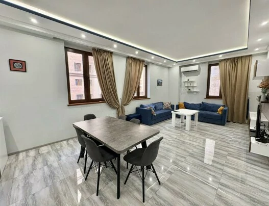 Վ. Սարգսյան փողոցում՝ Հանրապետության հրապարակի հարևանությամբ՝ քաղաքի լավագույն էլիտար շենքերից մեկում՝ վարձով է տրվում 3 սենյականոց ընդարձակ, գեղեցիկ դիզայնով և լուսավորությամբ բնակարան։ Այն գտնվում է 10 հարկանի նորակառույց շենքի 9-րդ հարկում: Բնակարանը կապիտալ եվրո նորոգված է՝ համապատասխան վերջին եվրոպական ստանդարտներին: Ապահովված է բոլոր կոմունալ հարմարություններով։ Ջեռուցումը անհատական է, տեղադրված է օդորակիչներ։ Տեղադրված է երկաթե դուռ, եվրո պատուհաններ, հատակը ծածկված է մանրահատակով։ Խոհանոցը և սանհանգույցներըը սալիկապատված են, ապահովված է անհրաժեշտ սանտեխնիկայով։ Շենքում առկա է մարզասրահ, շոգեբաղնիք և լողավազան, ինչպես նաև առաջին հարկում տեղակայված են սրճարաններ, էսթետիկ կենտրոններ և բանկեր։ Ավտոմեքենաների համար հատկացված է ստորգետնյա կայանատեղի՝ հավելավճարով։