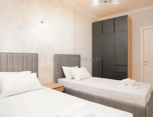 Վարձով է տրվում 3 սենյականոց նորաոճ և ընդարձակ բնակարան Հյուսիսային պողոտայում , նորակառույց էլիտար շենք : Ունի գեղեցիկ դիզայներական ոճով ժամանակակից ինտերիեր, բոլոր սենյակները և խոհանոցը համալրված են բարձրորակ կահավորանքով և վերջին սերնդի կենցաղային տեխնիկայով: Ջեռուցումը կենտրոնացված է : Հատակը պատված է գրանիտե սալիկներով: Առկա է 2 լոգասենյակ, որոնք երեսպատված են բարձրորակ կերամիկական սալիկներով և ապահովված են սանտեխնիկայով, տեղադրված է ջակուզի: Բնակարանն ունի զգեստասենյակ և ներկառուցված պահարաններ: Առկա է ստորգետնյա ավտոկայանատեղի: Շենքում գործում է անվտանգության ծառայություն :