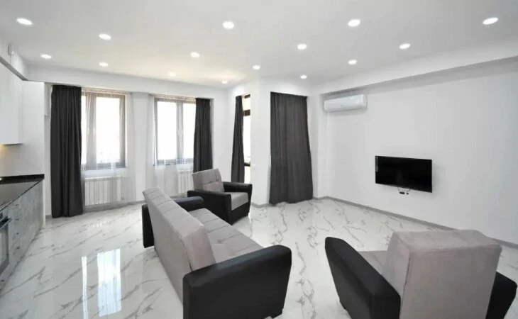 Տրվում է վարձով հարմարավետ 3 սենյականոց բնակարան նորակառույց շենքում Սարյան փողոցում կենտրոնում, 2 սանհանգույց։