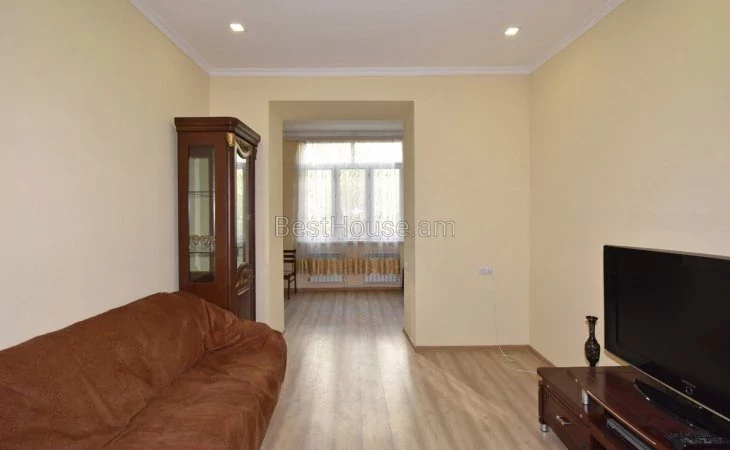 Սարյան և Արամ փողոցների խաչմերուկում վարձով է տրվում 3 սենյականոց բնակարան, որի ընդհանուր մակերեսը կազմում է 80 քմ.: Այն գտնվում է 5 հարկանի քարե շենքի 2-րդ հարկում: Բնակարանը կապիտալ նոր վերանորոգված է: Ապահովված է բոլոր կոմունալ հարմարություններով։ Ջեռուցվում է գազի կաթսայի միջոցով: Տեղադրված է երկաթե դուռ, եվրո պատուհաններ, օդորակիչ, հատակը ծածկված է լամինատով։ Բնակարանը կահավորված է և ապահովված է տեխնիկայով: Մոտակայքում կարող եք գտնել բազմաթիվ խանութներ, ժամանցի կենտրոններ, սուպերմարկետներ, բանկեր: