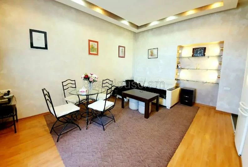 Բնակարանը գտնվում Երևանի կենտրոնում, Թումանյան և Ավագ Պետրոսյան փողոցների անկյունում։ Եվրոպական վերանորոգում, 2 օդորակիչ, բաց պատշգամբ, լվացքի մեքենա, սառնարան, ջեռուցման համակարգ, եվրոպատուհաններ։