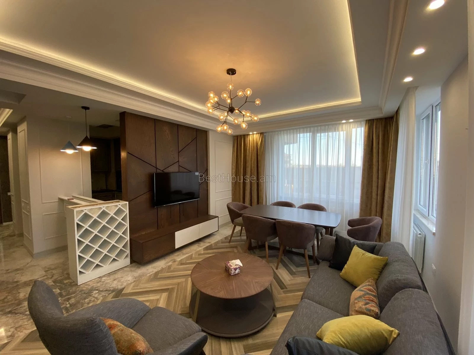 Վարձակալության է տրվում 3 սենյականոց արևկող և շատ գեղեցիկ դիզայներական լուծումներով բնակարան՝ 82 ք.մ. մակերեսով, որը գտնվում է Բագրևանդ թաղամասում՝ նորակառույց "Գարունավան թաղամասում, 3 հարկանի նորակառույց շենքի բարձր 1-ին հարկում և ունի կից 16 քմ. հողատարածք, որն ունի առանձին մուտք դեպի բնակարան, հողատարածքը հիանալի կարող է ծառայել որպես ամառային հանգստի հատված: Բնակարանը կապիտալ եվրովերանորոգված և չբնակեցված է: Հատակը ծածկված է մանրահատակով և սալիկով, որը տաքացվող է: Ջեռուցումը կատարվում է իտալական կաթսայի միջոցով: Սանհանգույցները սալիկապատված են իսպանական սալիկներով, ծորակները և սանտեխնիկան` իտալական է: Բնակարանը կահավորված է ժամանակակից, որակյալ և նրբաճաշակ կահույքով և տեխնիկաով, վարագույրները գերմանական արտադրության են: Բնակարանն ունի խորդանոց(5 քմ.) և ստորգետնյա կայանատեղ: Թաղամասն հսկվում է 24 ժամյա ռեժիմով, ունի պահակակետ, աղբահանություն, մաքրություն: Բնակարանը տրվում է ողջ կահույքի և տեխիկայի հետ միասին: