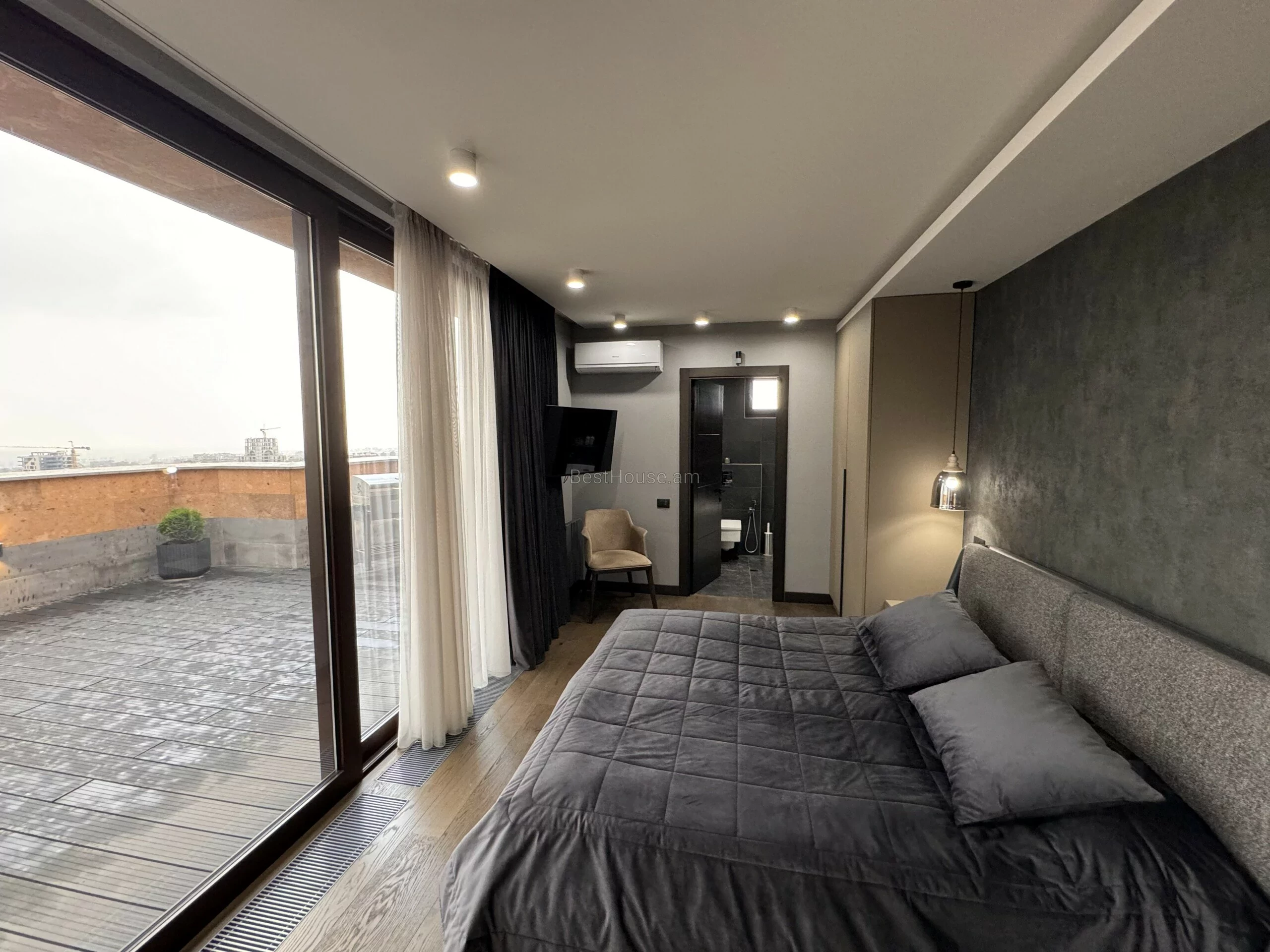 Տրվում է վարձով ընդարձակ նորաոճ գեղեցիկ 4 սենյականոց բնակարան՝ պենթհաուս, նորակառույց շենքում Հրաչյա Ներսիսյան փողոցում, բնակարանը հագեցված է անրաժեշտ գույքով և տեխնիկայով, ունի գեղեցիկ ընդարձակ տեռասսա և գեղեցիկ տեսարան։