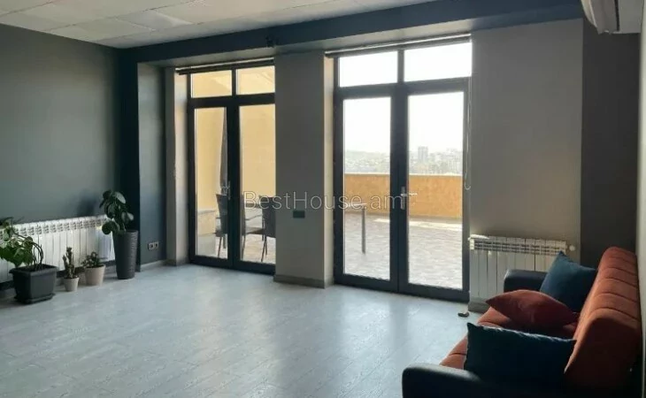 Վարձակալությամբ է տրվում 205 ք.մ. Մակերեսով վերանորոգված գրասենյակային տարածք Կենտրոնում, Վերնիսաժի հարևանությամբ ։ Գրասենյակը ունի հրաշալի տեսարան։ Ընդհանուր մակերեսը 260 ք.մ է, որից 55 քառակուսի մետրը բաց տեռասա գեղեցիկ տեսարանով դեպի Հանրապետության Հրապարակ։ Գրասենյակը ունի մեծ նախասրահ, 2 առանձնասենյակ, առանձին կահավորված խոհանոց, 2 սանհանգույց։ Առկա է կենտրոնական ջեռուցում, և հովացման համակարգ։ Հարմար է, «Այ Թի» ոլորտի, Բեք օֆիսի, ներկայացուցչական օֆիսի, մարկետինգային, հաշվապահական, իրավաբանական, դիզայներական, ճարտարապետական, և նմանատիպ այլ գործունեությունների համար: