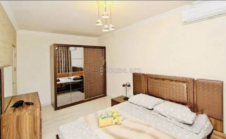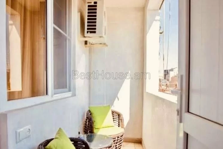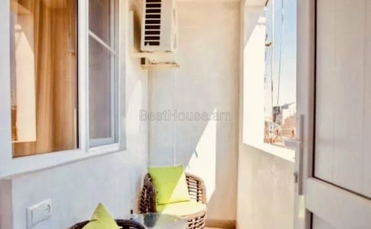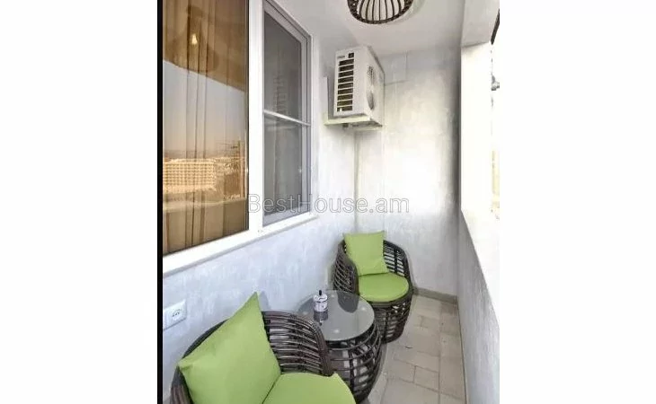 ԲնակարանԸ կապիտալ նորոգված է, կահավորված բոլոր անհրաժեշտ գույքով և տեխնիկայով Ունի բաց բալկոն դեպի հրապարակ տեսարանով;