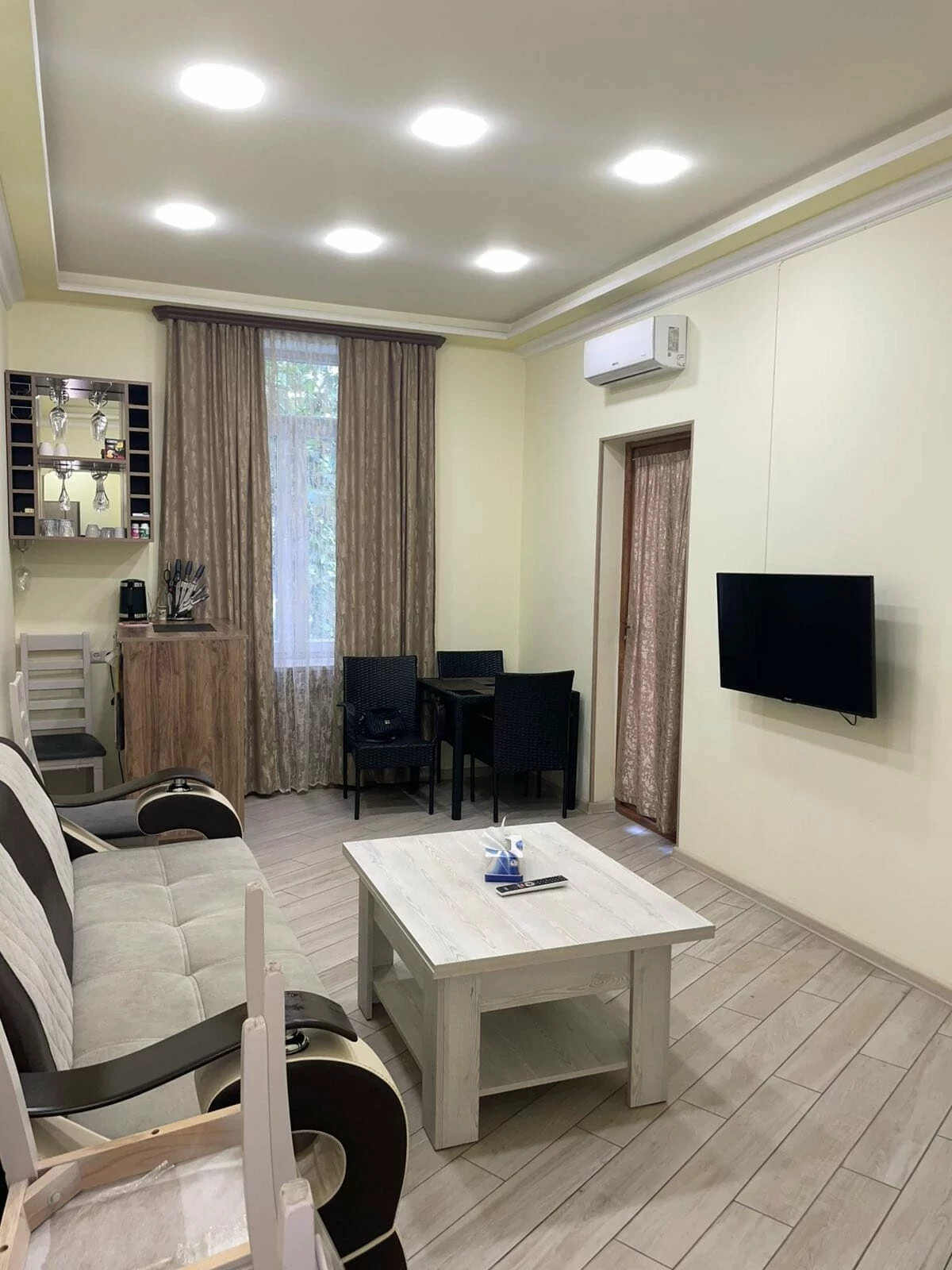 Հարմարություններ • անկողնային պարագաներ • սրբիչներ • հիգիենայի պարագաներ • Smart TV, Wi-Fi • օդորակիչ, հովացման համակարգ • սպասքև խոհանոցային տեխնիկա • կենտրոնացված ջեռուցման համակարգ, կաթսա • մշտական տաք և սառը ջուր