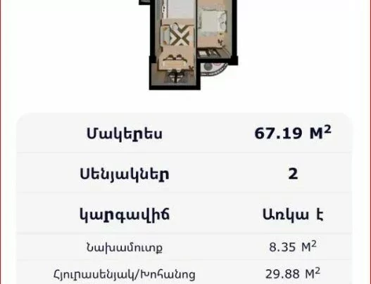 water tank 400 liters, BAX system, refrigerator, washing machine, partial furniture.