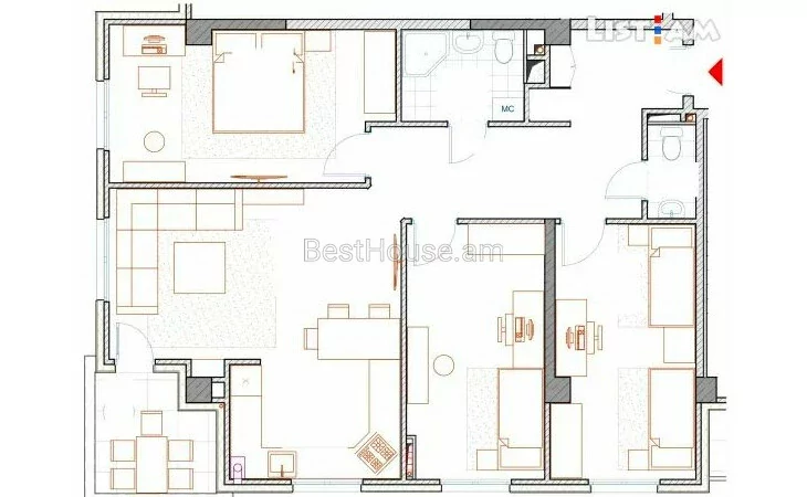 A bright 4-room apartment is for sale in Adonts street with partial renovation. There is an open balcony, 3 bedrooms and 2 bathrooms.