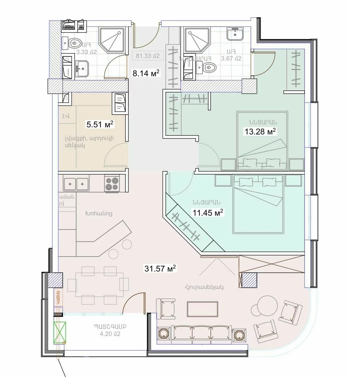 3 room apartment, Shirvanzade St, Arabkir (Yerevan)