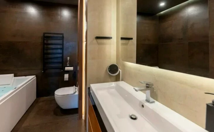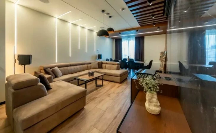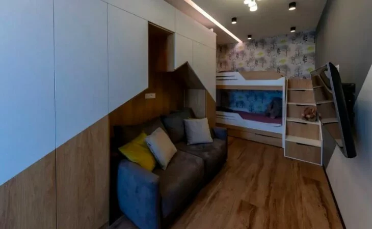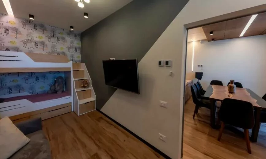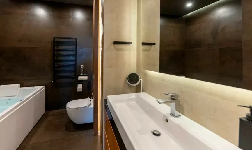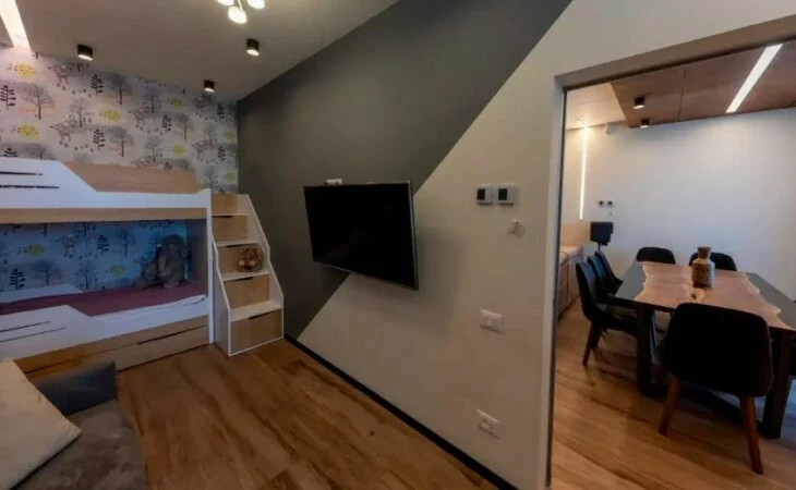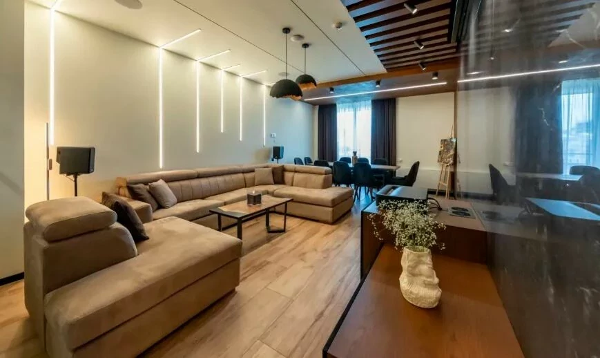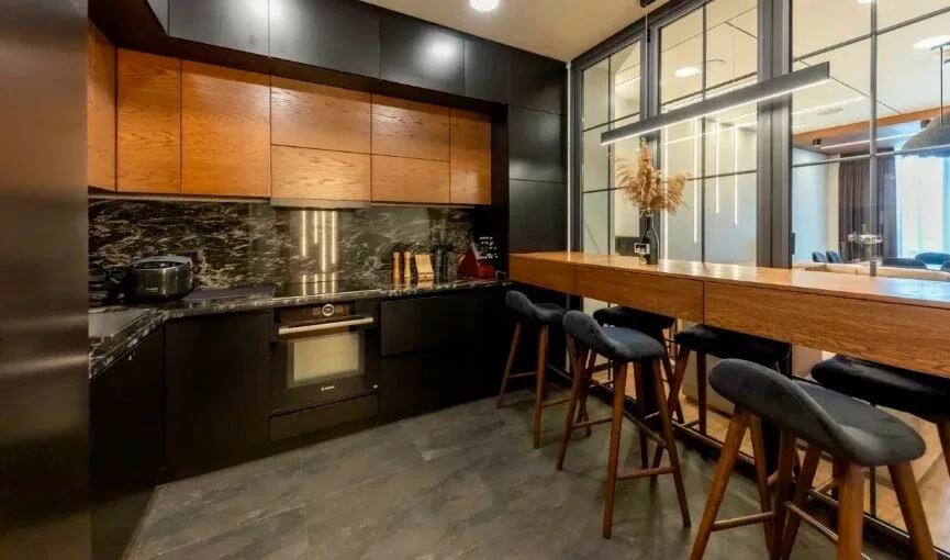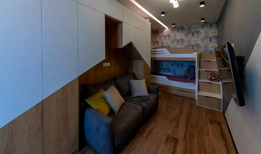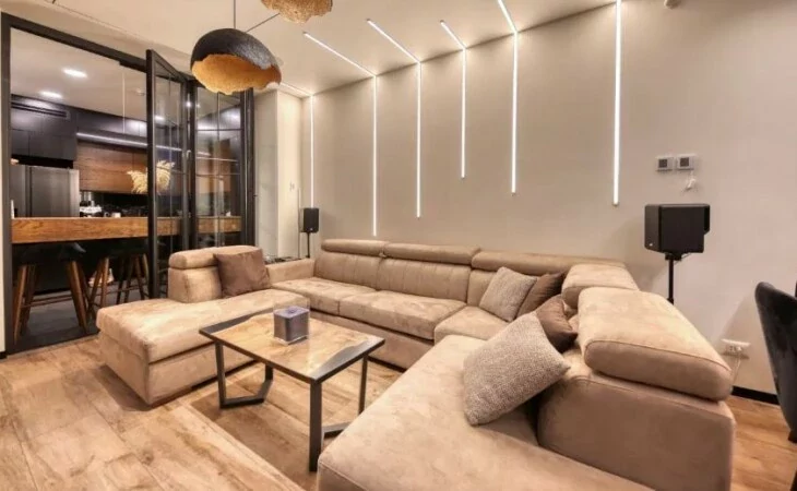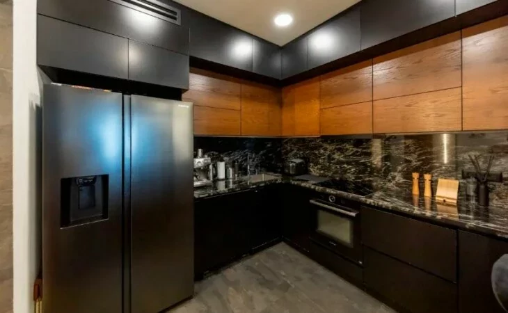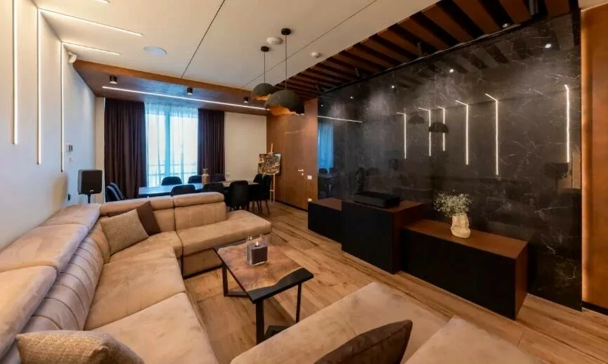 A modern, elite, beautifully designed, comfortable apartment is for sale. Hallway - 11.2 sq m Living room - 27 sq m Kitchen - 9.3 sq m Bedroom - 13.5 sq m Bathroom - 4.6 sq m Master Bedroom - 22.5 sq m Master Bathroom - 7.3 sq m Dressing room - 2.9 sq m Balcony - 13.6 sq m The apartment is equipped with high-quality appliances and furniture. Every detail is thought out for a comfortable and prosperous life. It is sold with all furniture and appliances. Details Dolby Atmos cinema A Dolby Atmos cinema with a 5.1.2 configuration is installed with speakers from the American company Polk, a 120" retractable/retractable screen, a 4k Ultra HD projector, a Sony AV Receiver, a smart heating and cooling system. The building has a centralized heating system. The house has its own individual boiler room. Which can work both together with the building system and completely separately. An individual heat pump is installed, which is used for both heating and cooling. Underfloor heating 4 fan coils - in the kitchen, living room and bedrooms, a 12 kW three-phase electric boiler, which together with a 200 liter tank, provides uninterrupted hot water. Smart thermostats are installed in all rooms of the house, with the help of which the entire system can be controlled from a smartphone. Water supply A three-level water filtration system is installed. Which provides clean drinking water, softens hard water, which in turn improves the taste and order of the water increases the durability of water-powered appliances With the help of the hot water recirculation system, hot water comes as soon as you open the tap Network and security All corners of the house are secured both wirelessly and with a wired network A security system with motion and smoke sensors is installed A video surveillance system is installed Appliances The kitchen is equipped with expensive appliances Bosch induction hob, gas stove, extractor hood, dishwasher, Samsung double-door refrigerator The bathroom has a high-quality washing machine and dryer manufactured by LG Bathrooms The bathrooms are equipped with Grohe showers and faucets The large bathroom has both a shower cabin and a jacuzzi Windows The exterior windows have been replaced. Panoramic slide energy-efficient windows have been installed A "garmoshka" separating the kitchen from the living room windows that make the use of the kitchen very comfortable and do not allow the smells of cooking to fill the whole house Balcony Large, comfortable balcony There are 2 folding tables and one stationary table with chairs. All in a wood/iron combination It is possible to install a small pool, which you will receive as a gift when buying the house There are heaters to enjoy the balcony in colder weather A very beautiful view opens up, especially the sunsets are indescribable Furniture, wardrobes, design The apartment is equipped with high-quality furniture, built-in wardrobes The living room has a very beautiful table made of oak and epoxy with chairs and 2 sofas The children's bedroom is furnished with beautiful and functional furniture The kitchen has a bar with chairs, the wall and table are made of granite natural stone The entire apartment is tiled with cushion tiles. There is a dressing room in the large bedroom