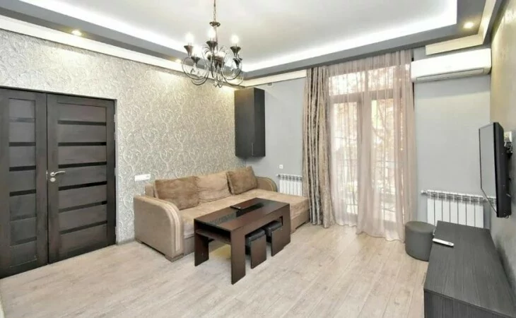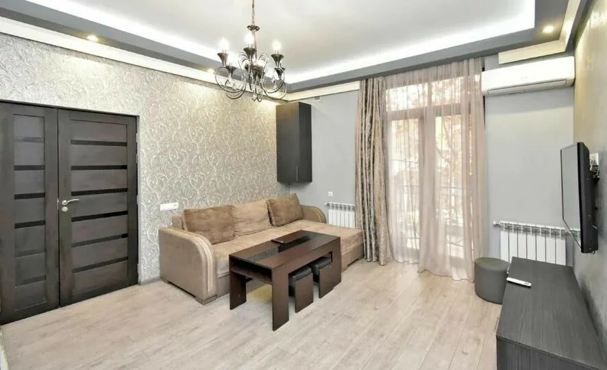 A comfortable, beautiful apartment is for sale on Baghramyan Avenue, in the Parma supermarket building. Located near Barekamutyan metro station. Stalinist project. Major renovation in designer style. Has a balcony, boiler, air conditioner, microwave oven, washing machine. Sold with ALL furniture and appliances. Nearby there is a SAS supermarket, Yerevan City supermarket, market, cafes and other entertainment venues.