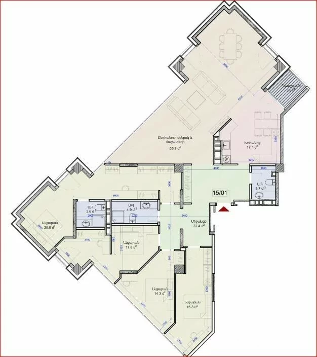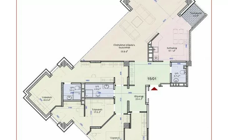 A spacious 5-room apartment is for sale in the best new building on Komitas Avenue. 4 full and bright bedrooms, 3 bathrooms, separate living room and kitchen.