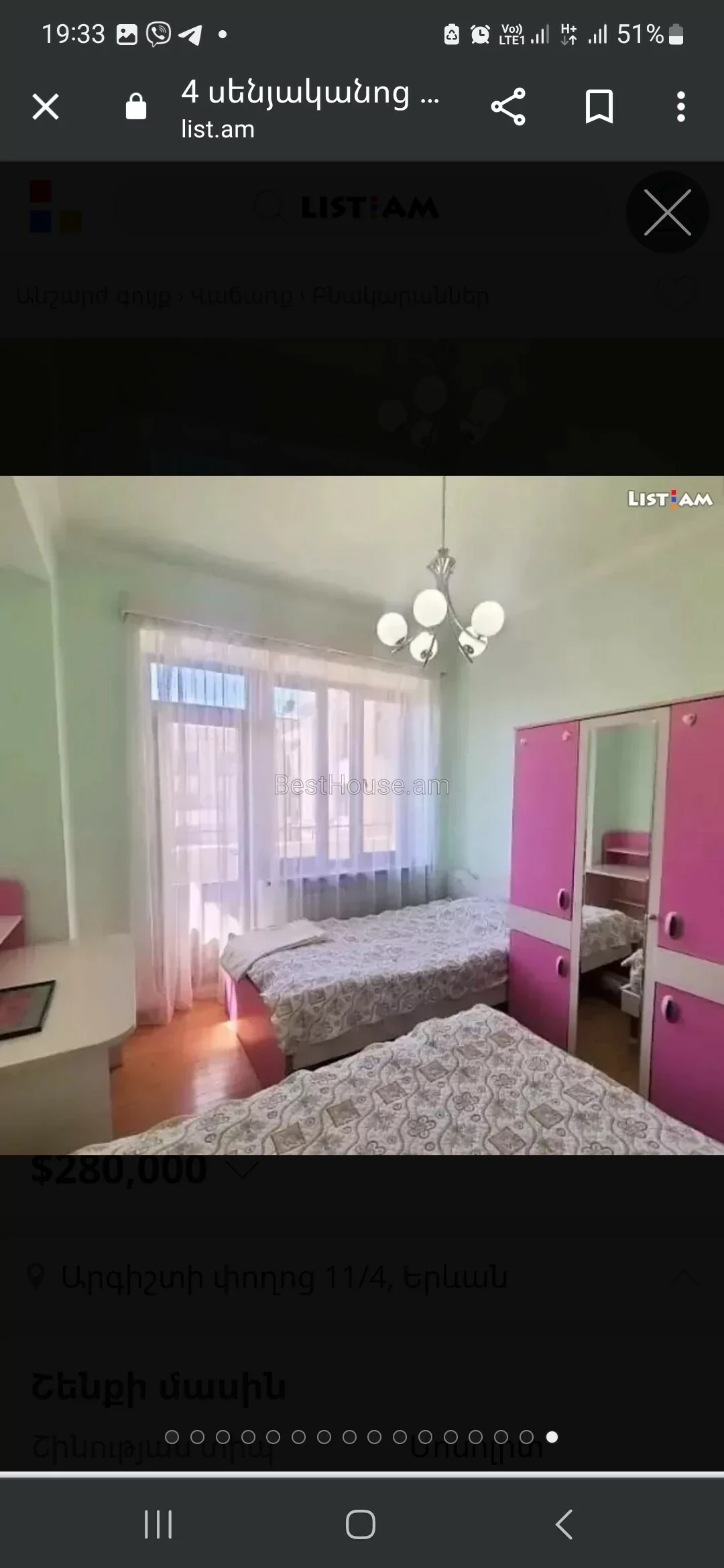 Fully renovated 4-room apartment for rent on Argishti street. The apartment is equipped with necessary property and equipment.