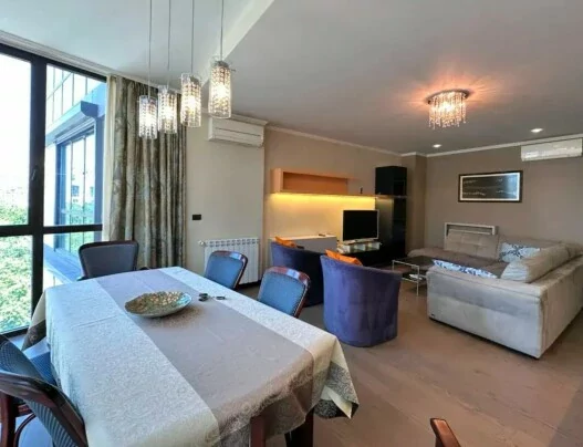 For sale: 3-room (there is a possibility of 4 rooms) apartment with a unique design and high-quality furniture, 138.2 sq.m. area, which is located on Verin Antarai street, on the 4th floor of a 6-story elite newly constructed building. The apartment is fully renovated with high-quality materials. Euro windows are installed, the floor is covered with quality parquet and tiles. The heating and cooling system of the apartment is neutralized. There are 2 bathrooms, which are covered with tiles, equipped with sanitary equipment, and a bathtub is installed. The kitchen furniture is new, European production (German). The apartment is furnished in a modern style, equipped with the latest generation of expensive appliances, there is a dressing room and built-in wardrobes. The apartment has 3 open balconies, 2 facing Saralanj, 1 facing Mount Ararat. There is a basement. The building has a high-quality elevator, a security system with a 24-hour security guard. The area is green and constantly maintained, there is a parking lot, an outdoor swimming pool and a playground.