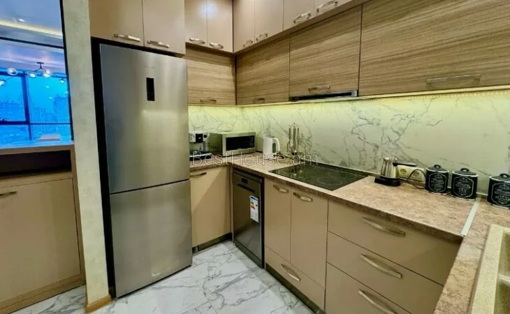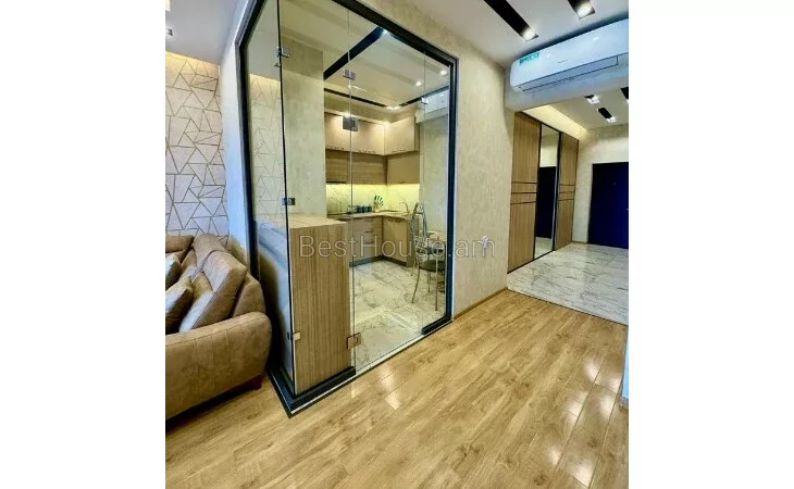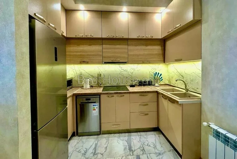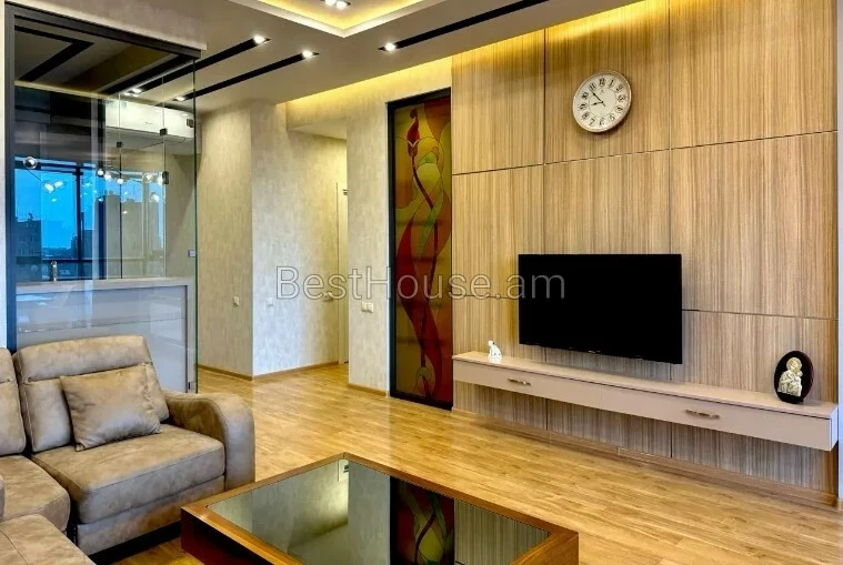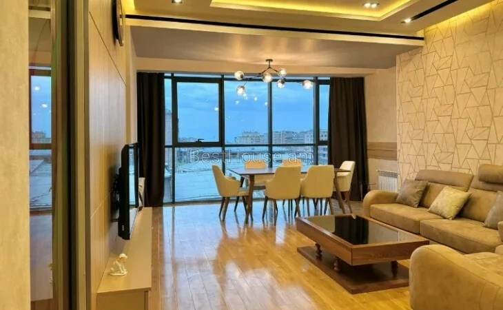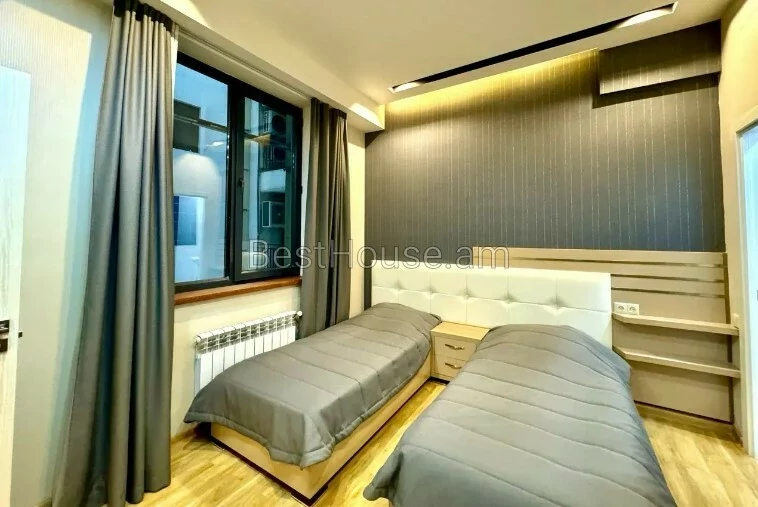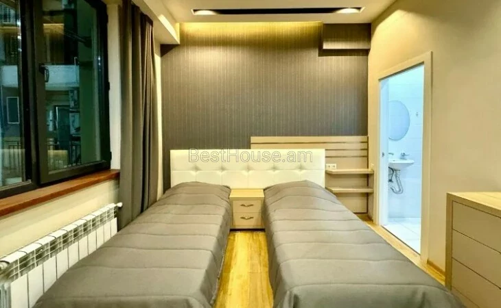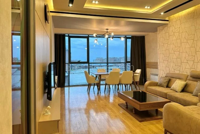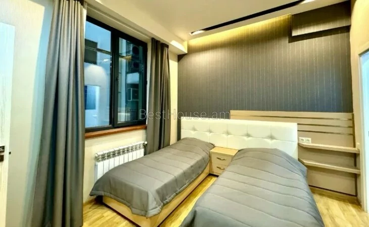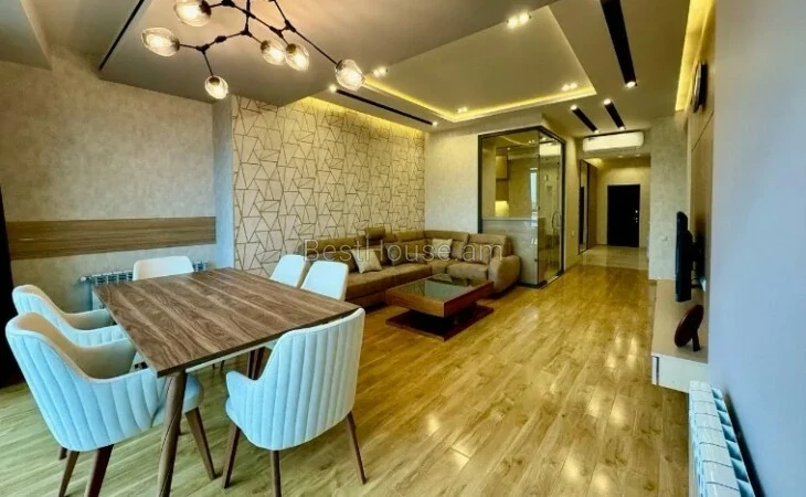 A 4-room apartment for sale in a newly built building on Tumanyan street, 98 square meters, 6 floors, 3+ bathrooms. The apartment is uninhabited, it is sold with all the furniture and appliances.