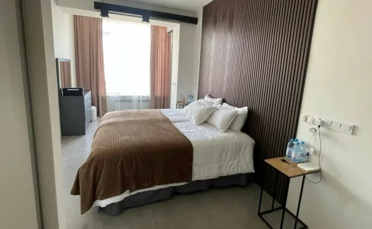 A newly renovated 3-room apartment in a newly built building on Nalbandyan Street is for sale. The apartment is being sold with furniture and appliances.