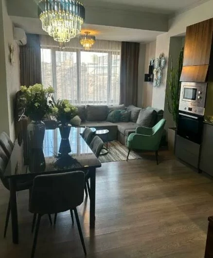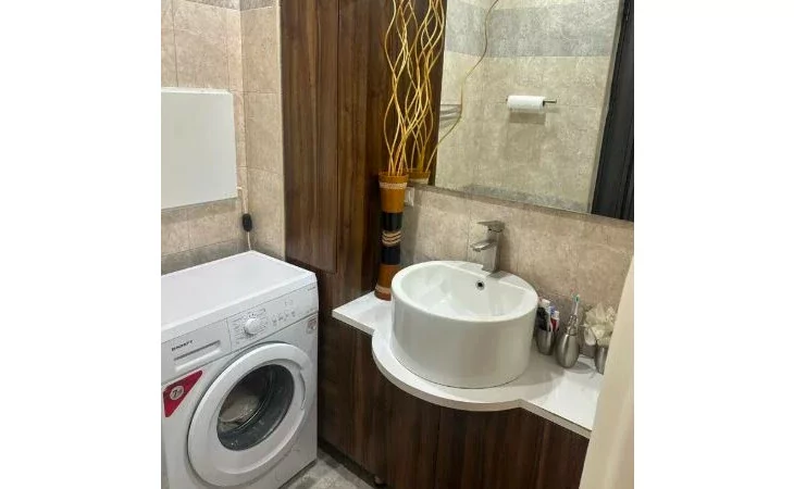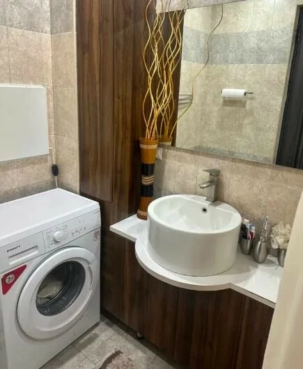 A 3-room modern, fully renovated apartment is for sale in Nork. It has a two-sided view of the yard and Myasnikyan Avenue. There are 2 bedrooms, 2 bathrooms. The apartment is sold with furniture and appliances.