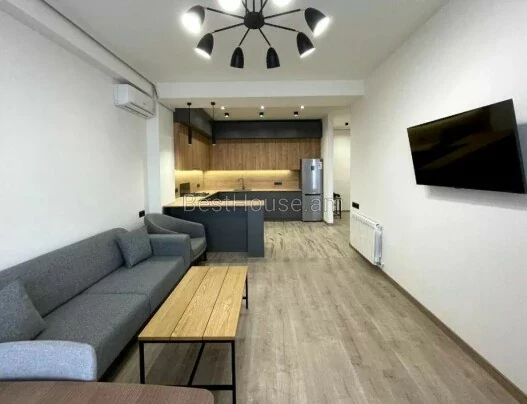A comfortable 2-room apartment is for rent in a newly built building, Leningradyan Street. The apartment is equipped with the necessary furniture and appliances.