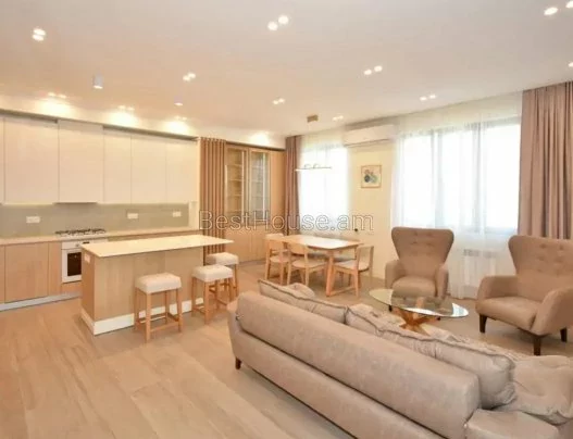 On Gribaedov Street, a 3-room designer-style renovated apartment with an area of 92 square meters is for rent. The apartment has an open balcony, outdoor parking. Equipped with necessary property and equipment.