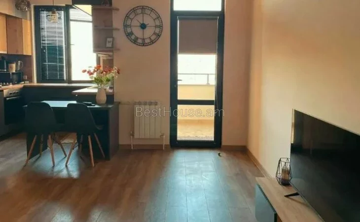 On the 14th/7th floor of a newly built building on Arghtyun street, a 2-room designer-style renovated apartment is for rent. The apartment is equipped with necessary property and equipment.