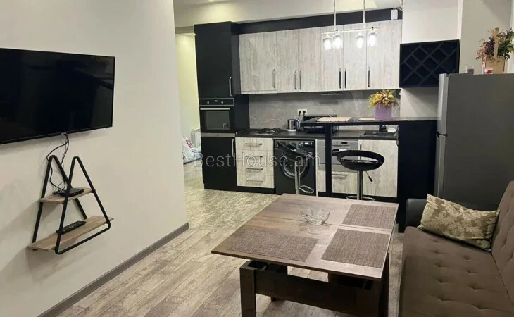 A 2-room apartment is for rent on Aram Khachatryan street, near the friendship metro. It is located on the 4th floor of a newly constructed 11-story elite building. It has an open balcony. The apartment is fully renovated. Equipped with all amenities. There is a heating system, air conditioner, fan, refrigerator, dishwasher, washing machine, microwave oven, vacuum cleaner, hair dryer, it is fully furnished. There are many shops in the neighborhood, Yerevan City supermarket is located on the lower floor of the building.