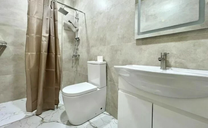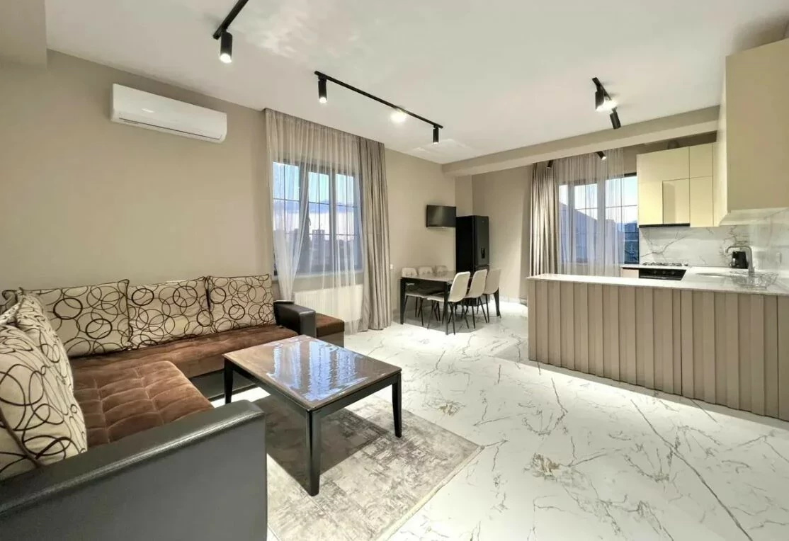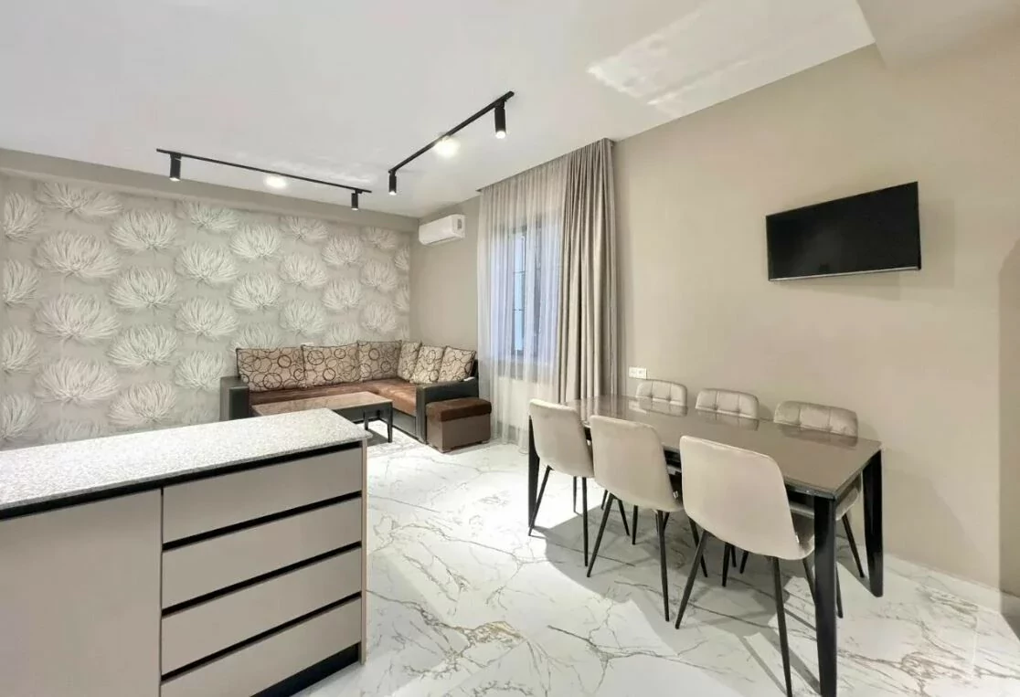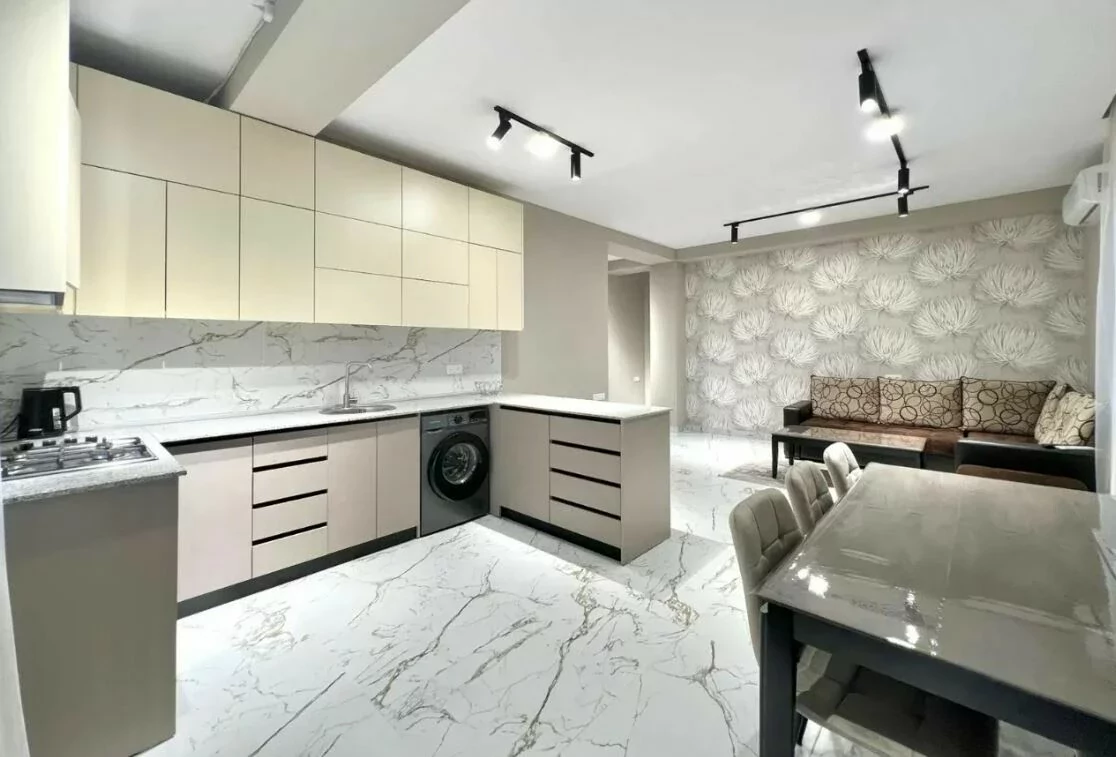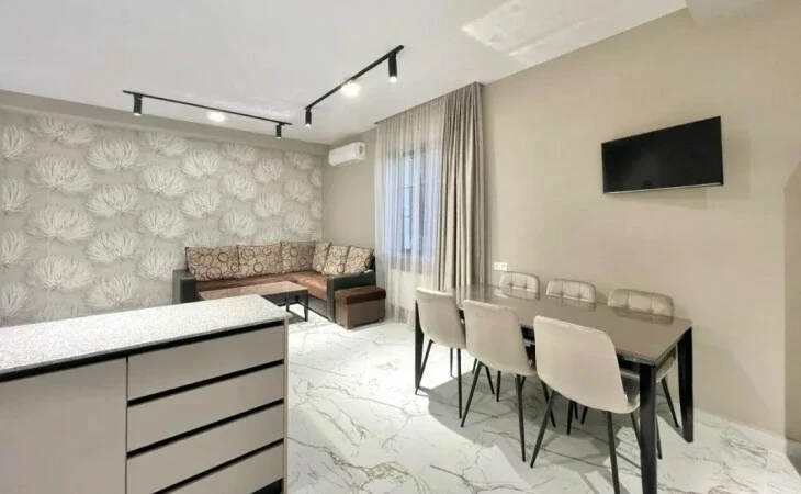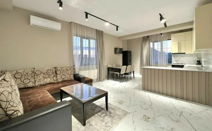 For rent: a 2-room apartment in a newly built building on Keru Street, 55 square meters, the apartment is equipped with the necessary furniture and appliances.