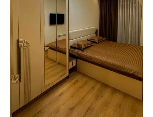 A comfortable 3-room apartment is for rent in a newly built building on Malkhasyants Street. The apartment is equipped with the necessary furniture and appliances.