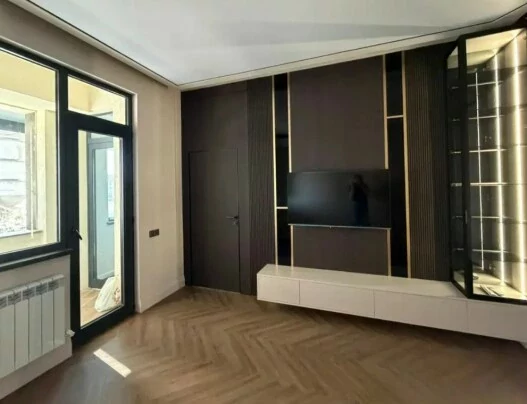 air conditioner, 2 bedrooms, 1 bathroom, and a large living room. Also, the apartment is renovated in a high-class designer style. The building has security guards.