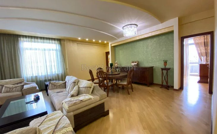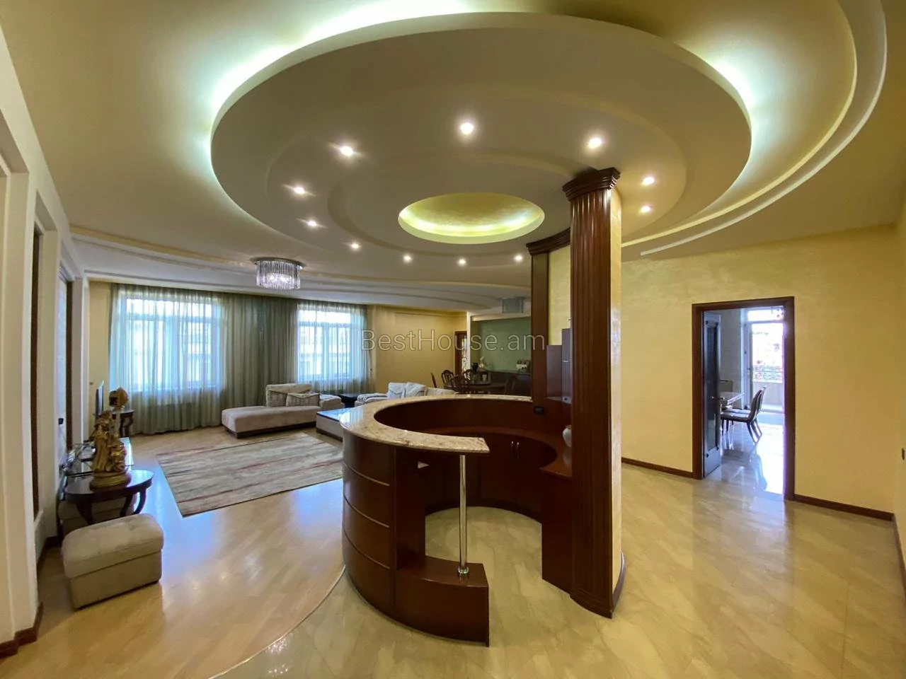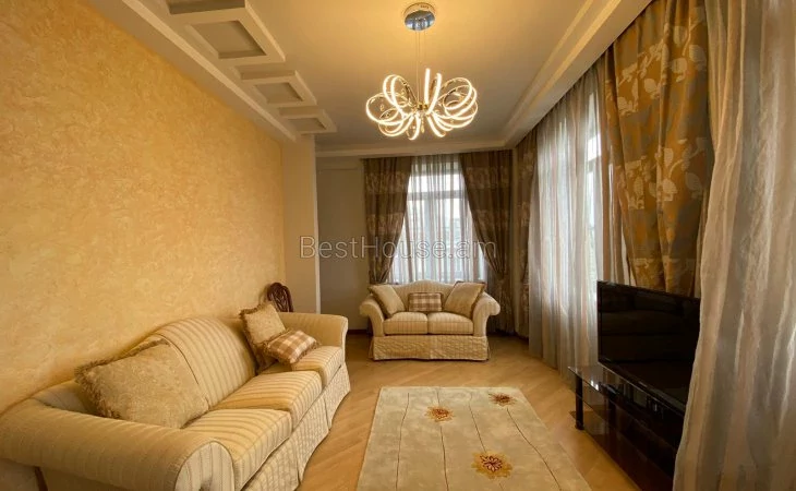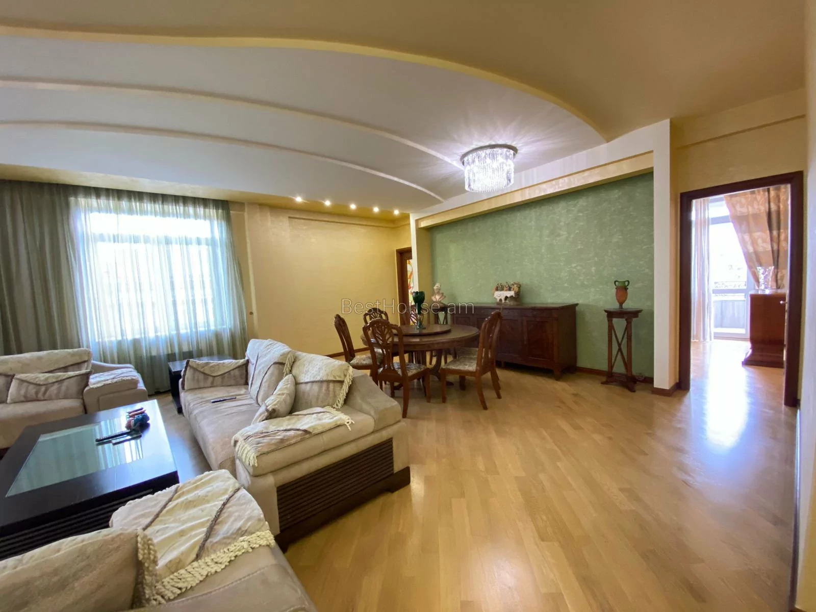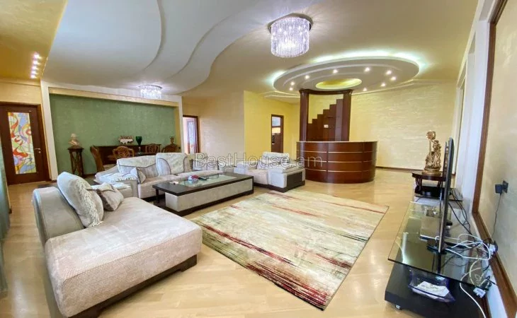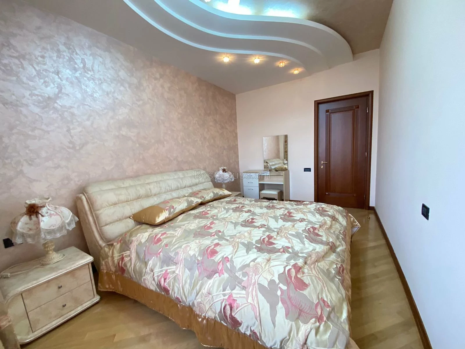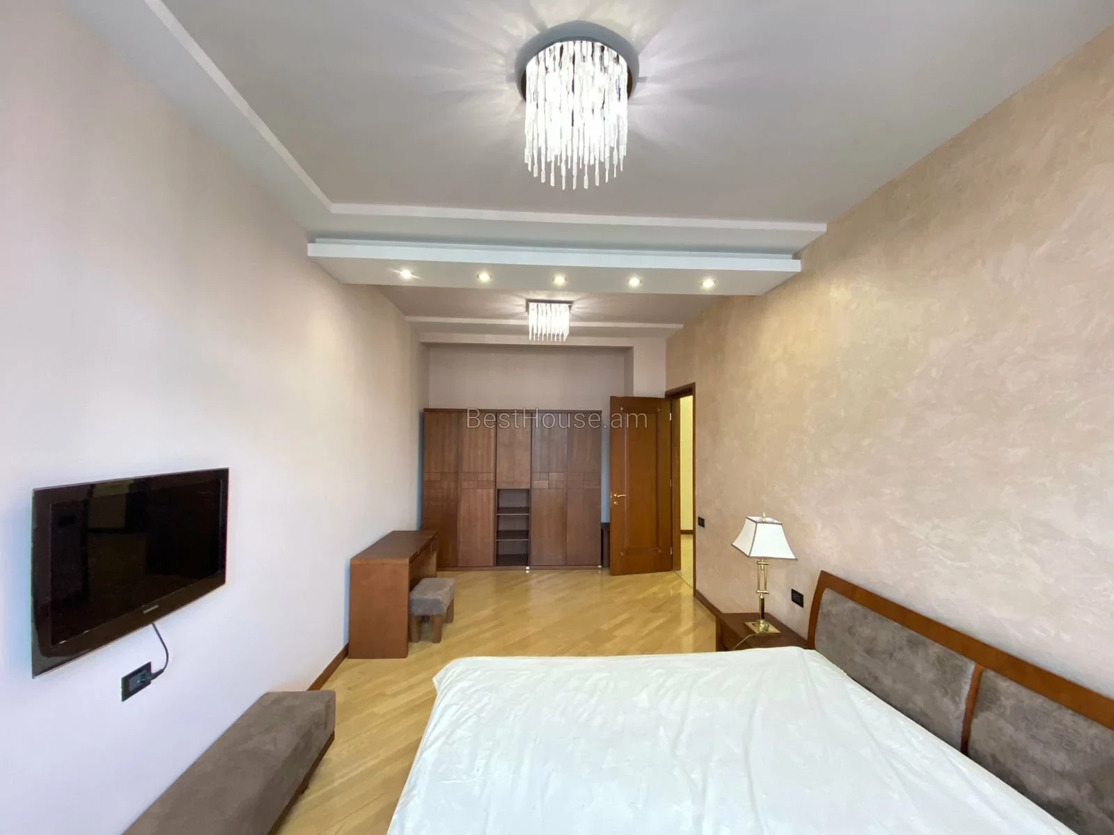 A 5-room apartment is for rent in the Center, in a newly built Elite building. The apartment is equipped with all utilities, furniture and appliances. The apartment has a beautiful view. The apartment has - 3 bedrooms, - 1 living room, - 1 rest room, - 1 separate kitchen, - 3 bathrooms. There is also a dishwasher and a microwave oven. There is a swimming pool and gym in the building. A garage for 2 cars is provided with the apartment.