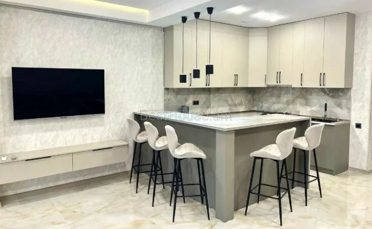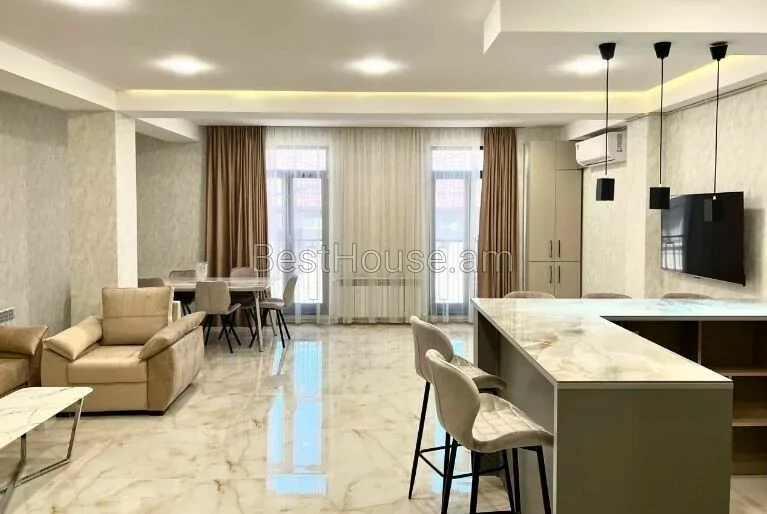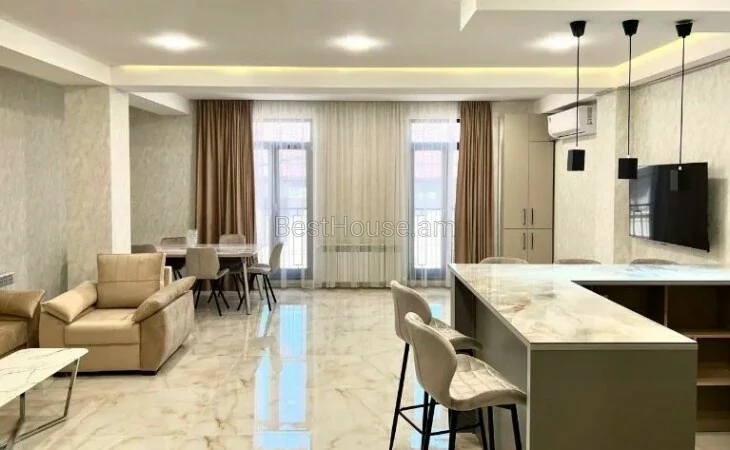 A fully renovated 3-room apartment with 2 bathrooms is for rent on Derenik Demirchyan Street. There is a covered balcony, outdoor parking. Equipped with necessary property and equipment.