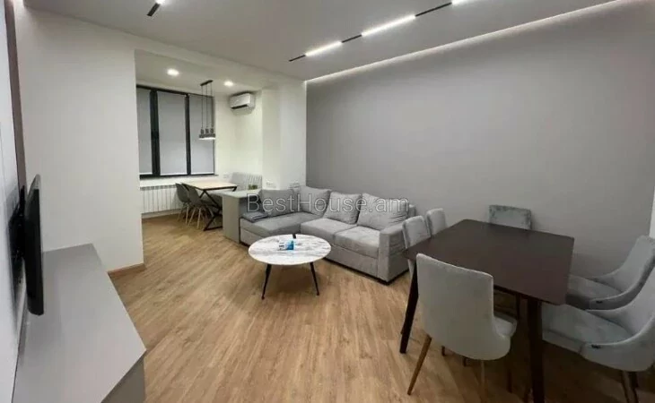 A 2-room apartment with designer solutions is for rent on Alek Manukyan Street. The apartment is equipped with necessary property and equipment.