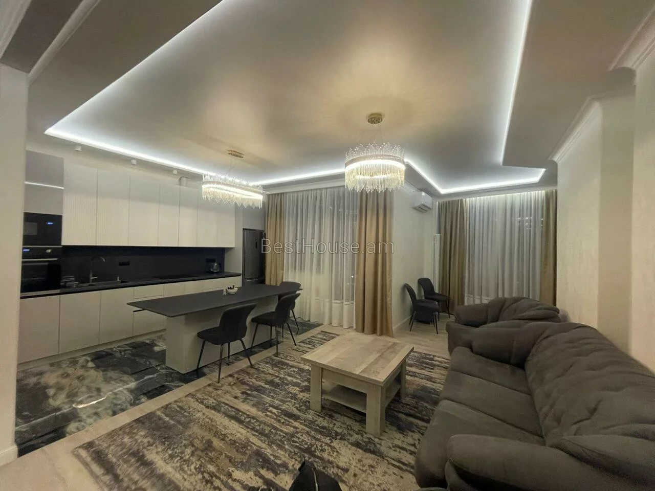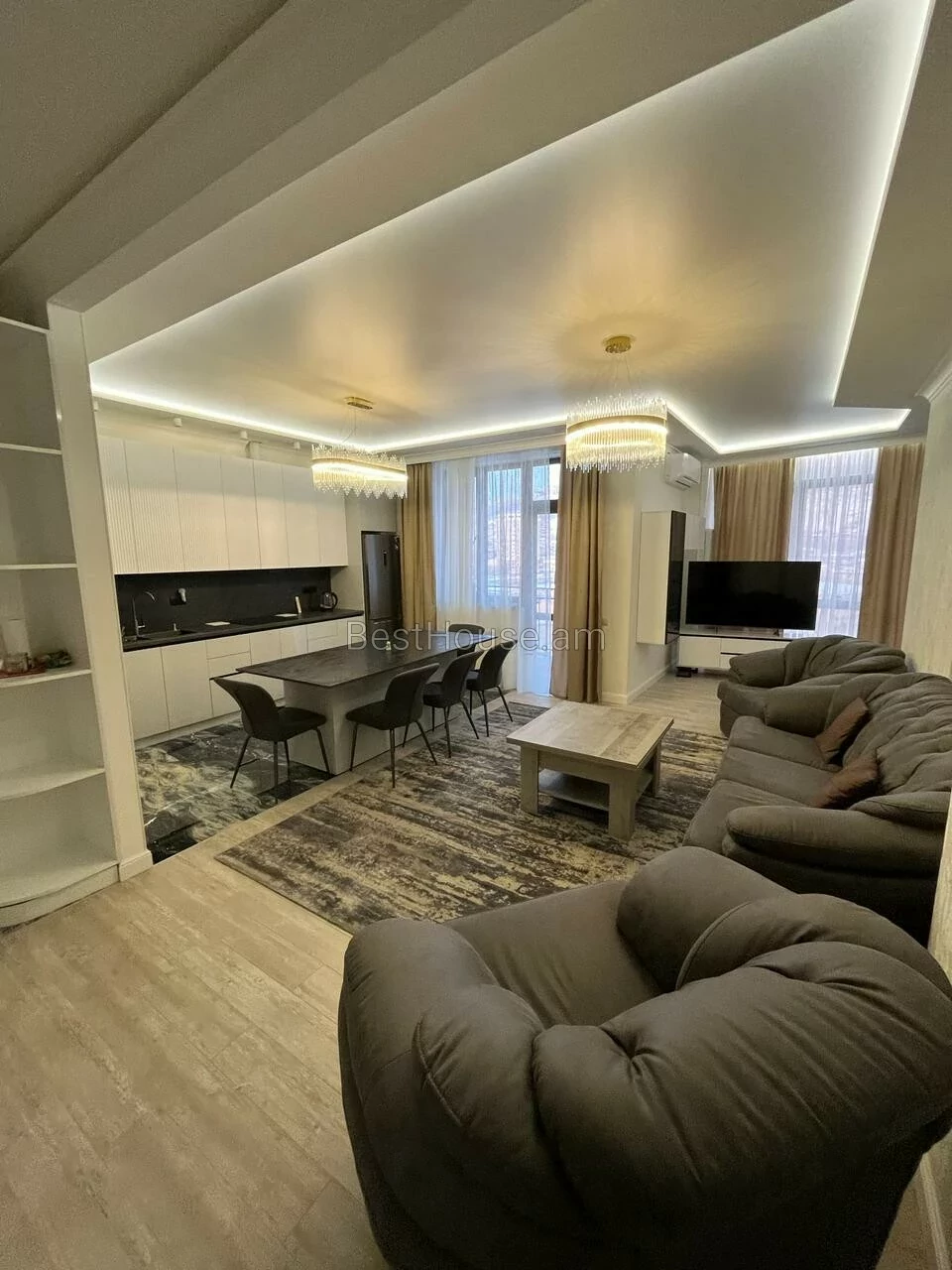 A fully renovated 3-room apartment is for rent in a newly built building on Vardanants Street. The apartment is equipped with necessary property and equipment
