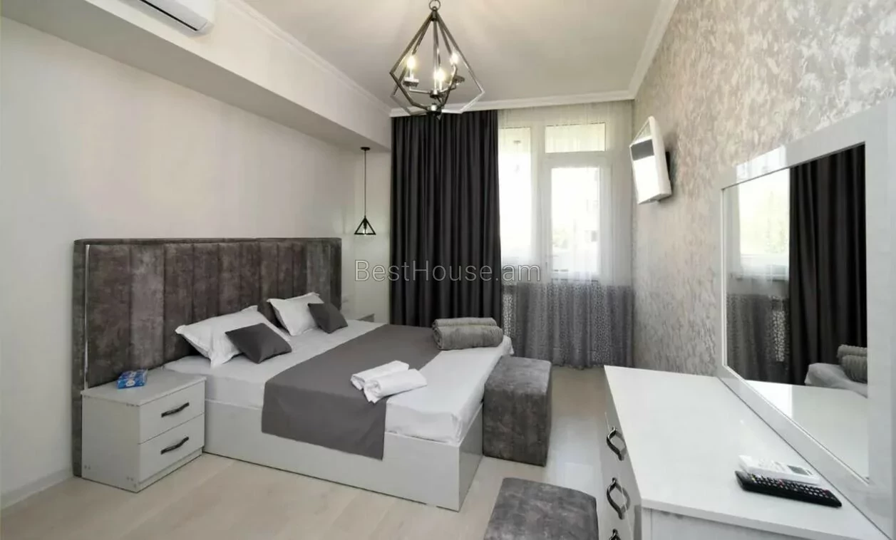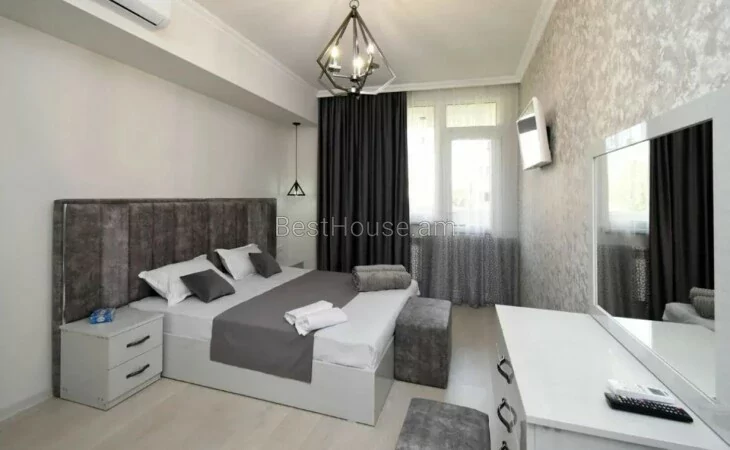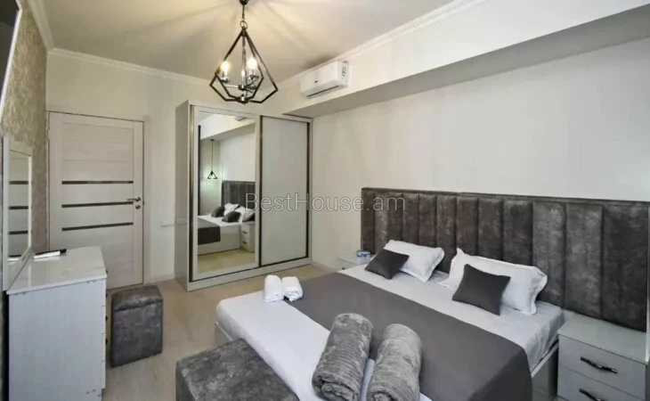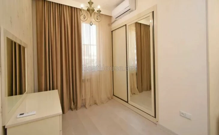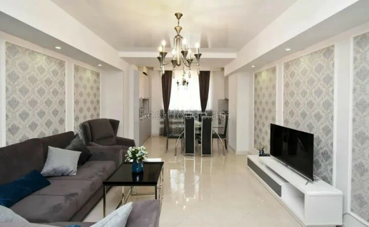 A 3-room apartment is for rent on Yeznik Koghbatsu street, 90 square meters, 2 bathrooms, the apartment is equipped with necessary furniture and appliances and has a beautiful open balcony.