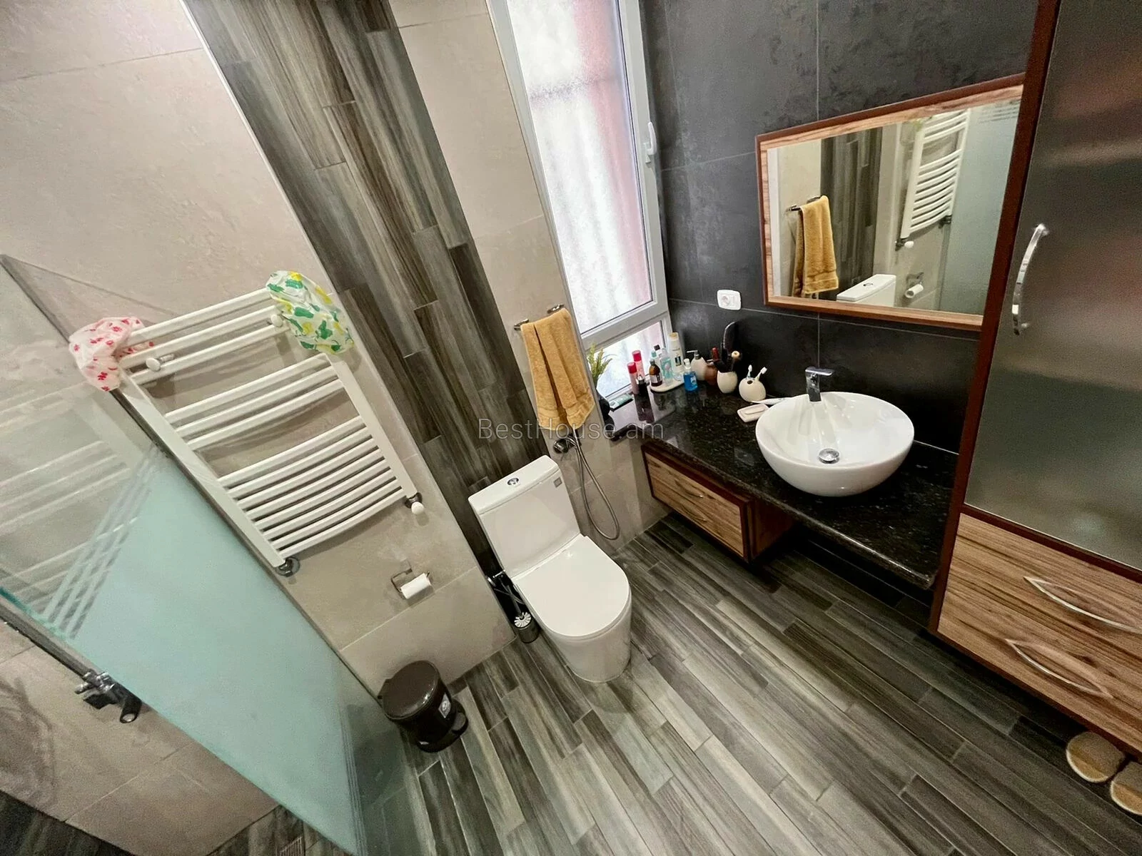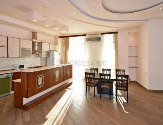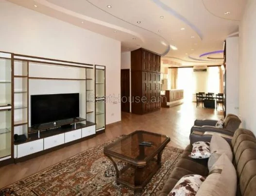 4-room apartment for rent in a newly elite building, located in the small center of Yerevan. The apartment has 3 bedrooms, 2 bathrooms, necessary furniture and appliances.