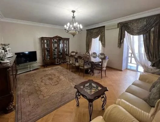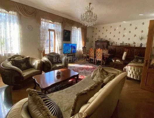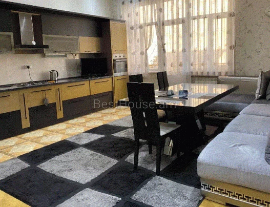 A 5-room 250 square meter apartment on the 4th floor of an 8-story building on Ekmalyan Street is for long-term rent or daily rent. The apartment is completely renovated, air conditioners, euro windows are installed, the floor is covered with parquet and heated tiles. 2 bathrooms with bathtubs are tiled, one of them is adjacent to the bedroom. There is a separate bathroom with a sink. The kitchen and rooms are furnished, provided with high-quality household appliances and all accessories, there is an intercom. The building has an elevator and a playground. Malibu Park is nearby.