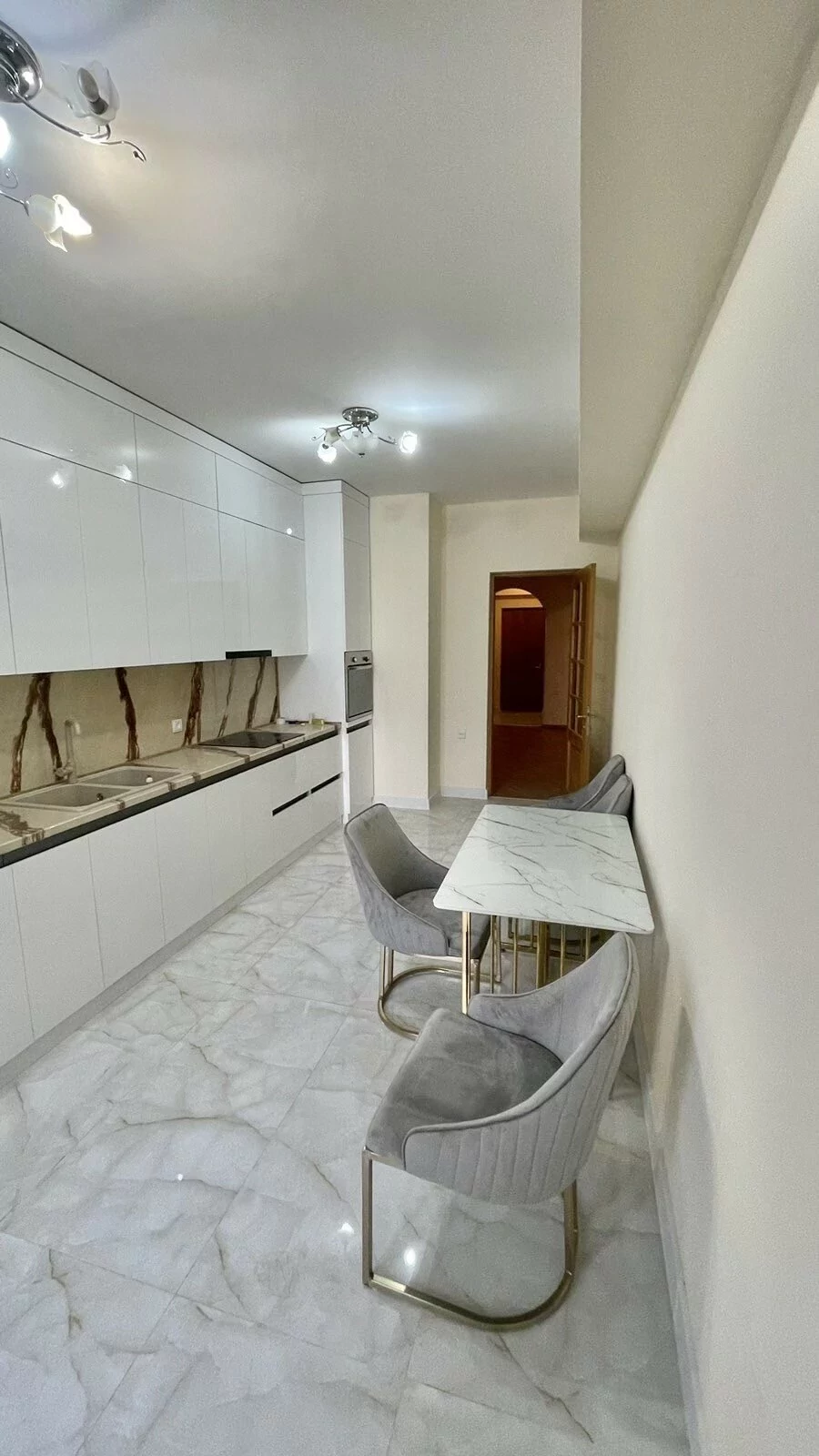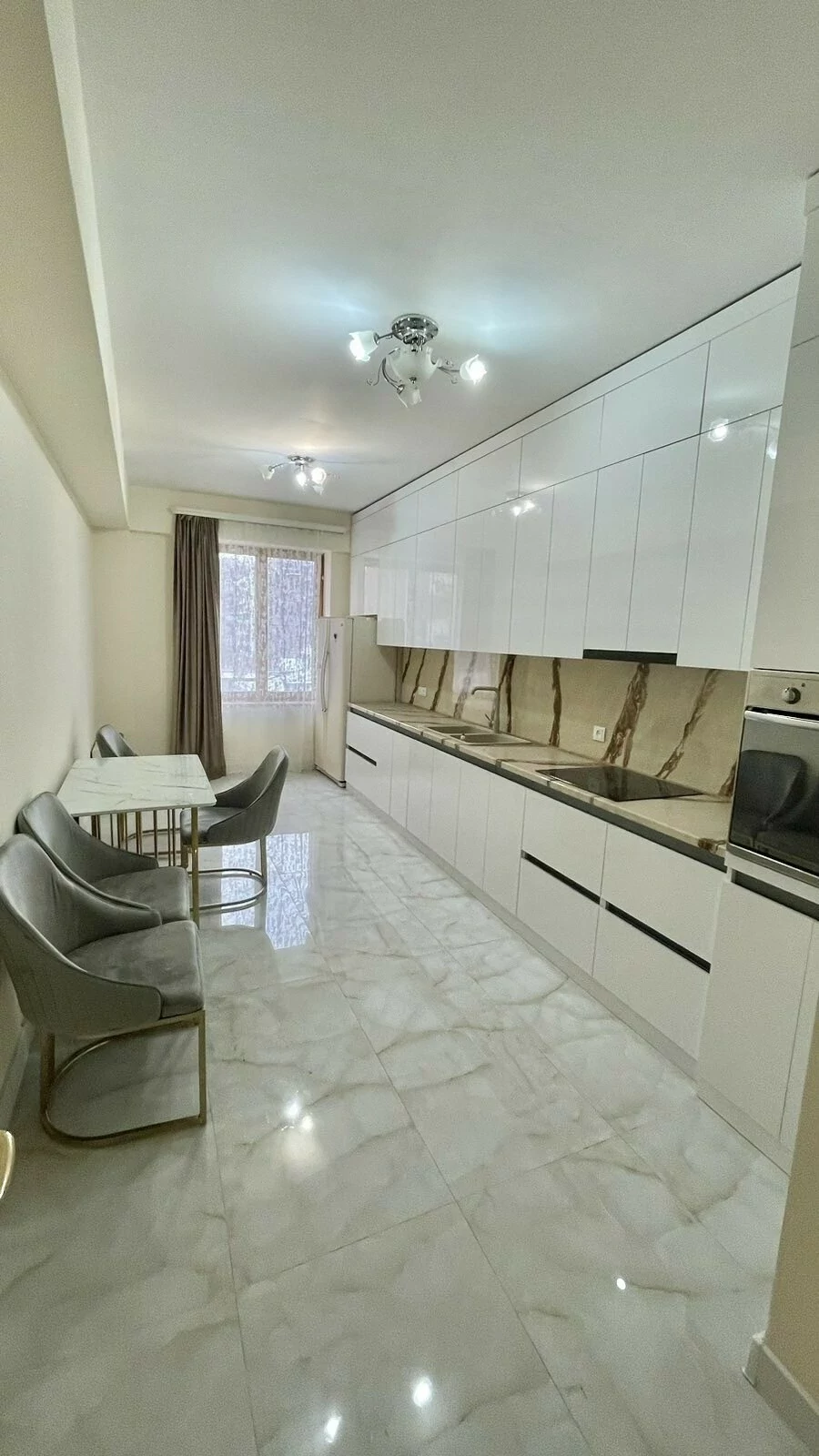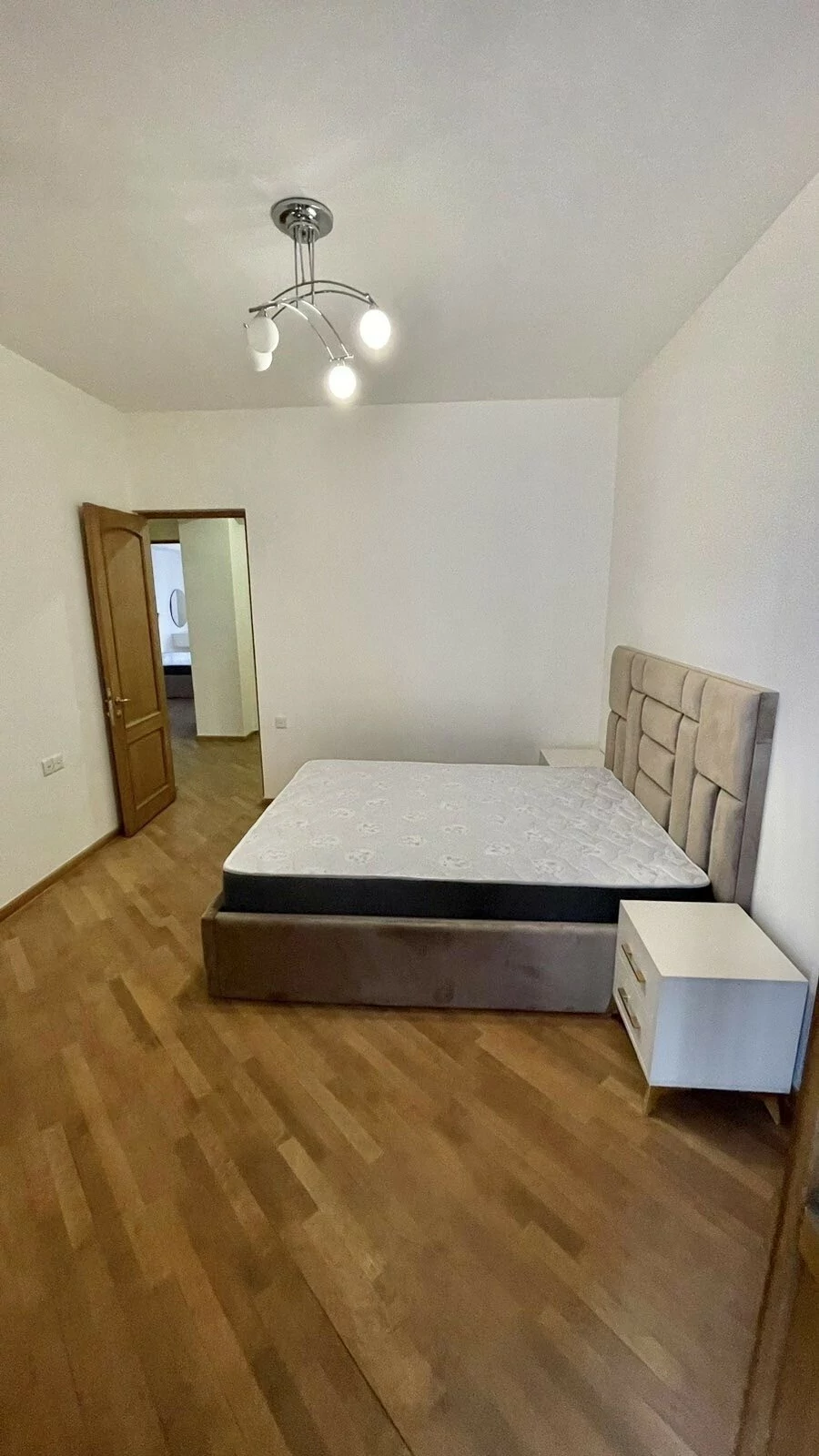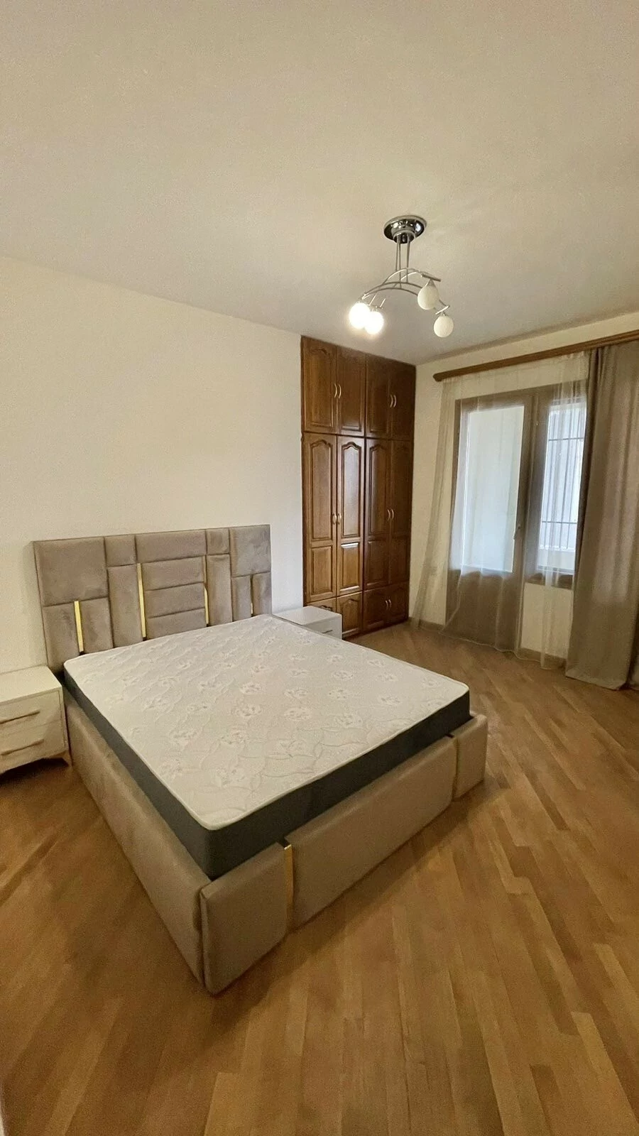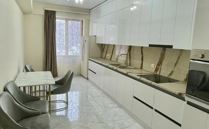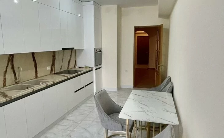 A newly renovated apartment in the center is for rent. It has 3 bedrooms, 2 bathrooms, living room, kitchen with new furniture, closed balcony, built-in wardrobes.