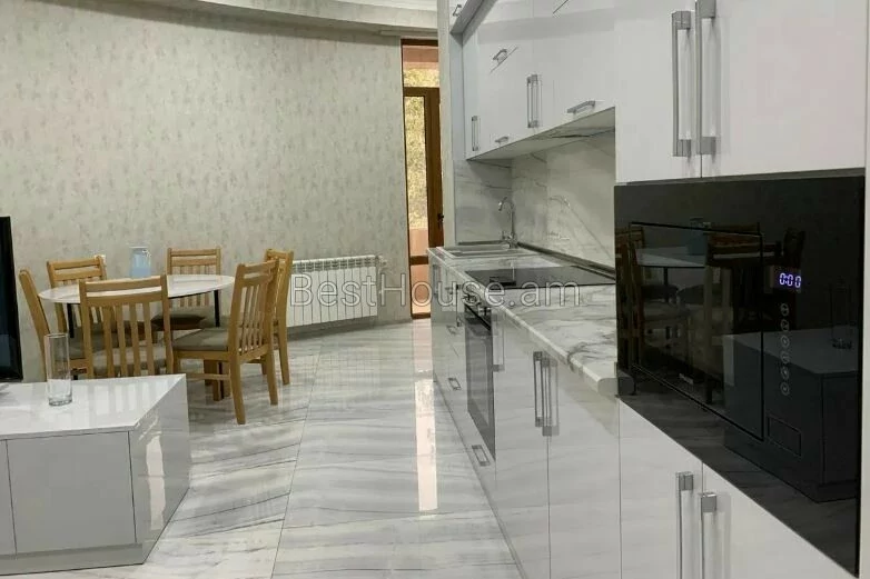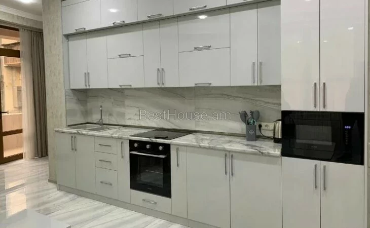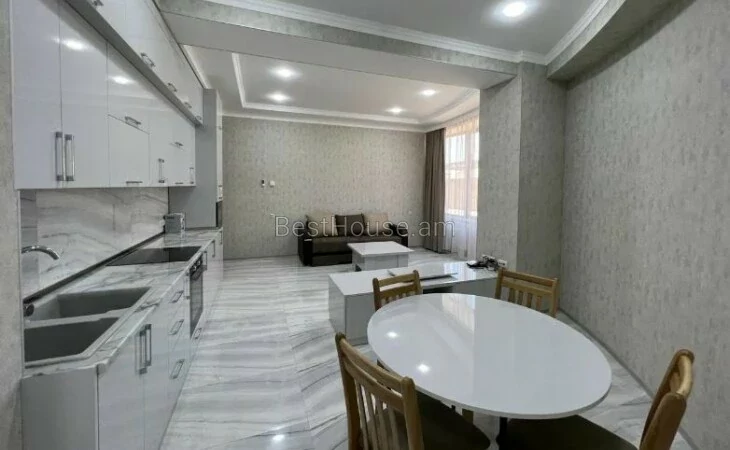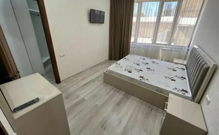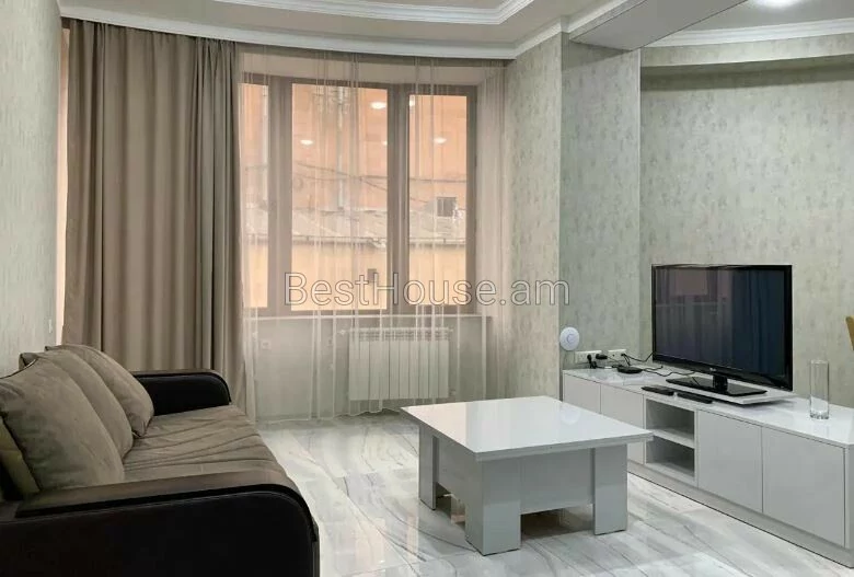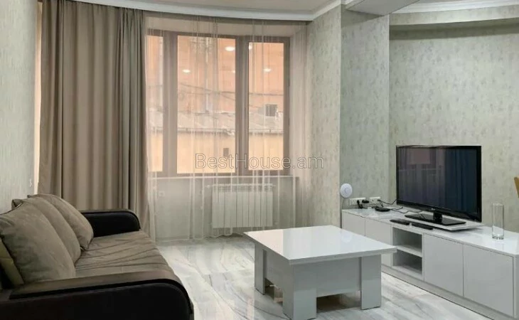 A 2-room apartment with an area of 88 square meters is for rent on Abovyan Street, not far from the Opera House, located on the 3rd floor of an 18-story building. The apartment is stylishly completely renovated, Euro windows are installed, air conditioner, the floor is covered with laminate and tiles. The bathroom is tiled and equipped with quality sanitary ware, it has a shower cubicle. The apartment has a central heating system, there is a dressing room and an open balcony with beautiful views. It is stylishly furnished, equipped with necessary household appliances. The building has high-quality elevators and a security system. All shops, bank branches and best entertainment places are nearby.