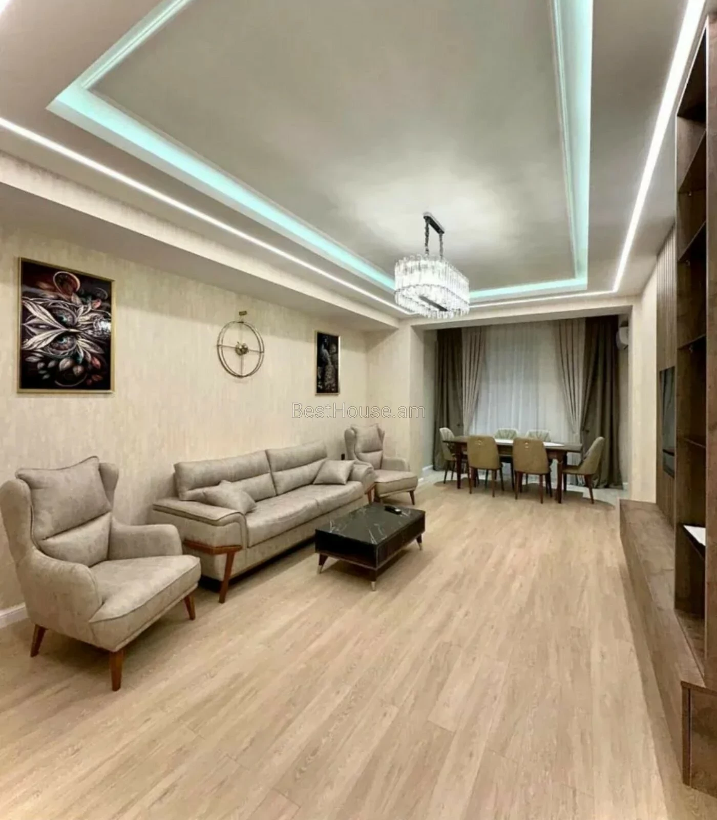 A 3-room renovated apartment in a beautiful design style is for rent on Ekmalyan street. The apartment is equipped with high-quality furniture and appliances.