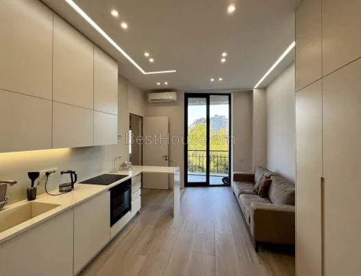 A two-room apartment is for long-term rent in a newly built building, without an intermediary. It is renovated, furnished, equipped with necessary appliances and utensils.