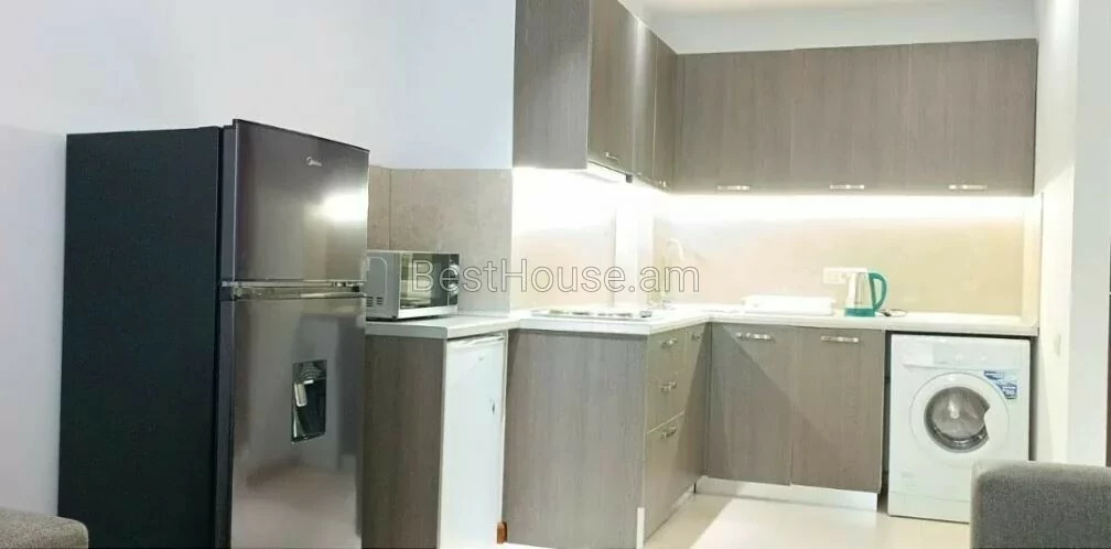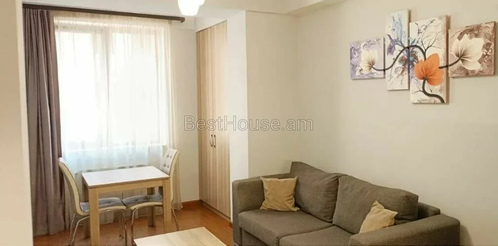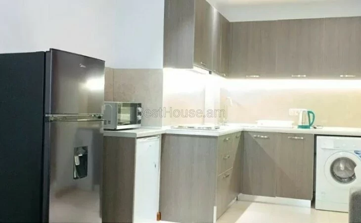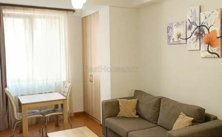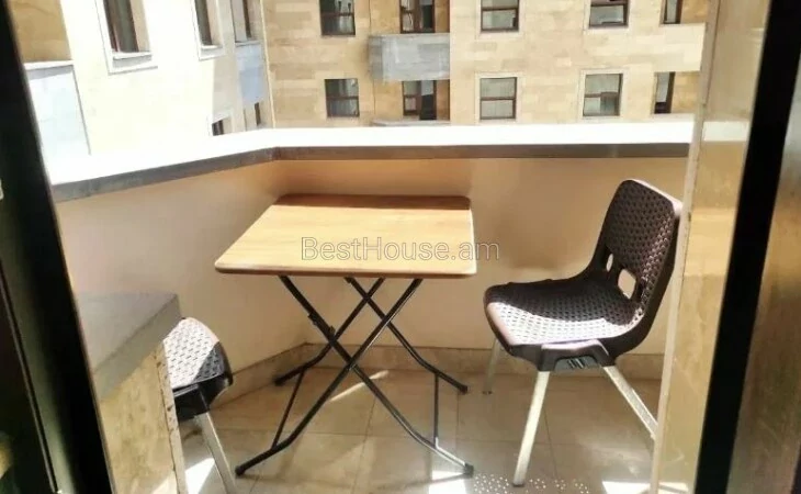 ...A comfortable 2-room apartment for rent in the Small Center, on Buzand street, a newly built elite building. The apartment is equipped with all utilities, furniture and appliances. It has an open balcony.