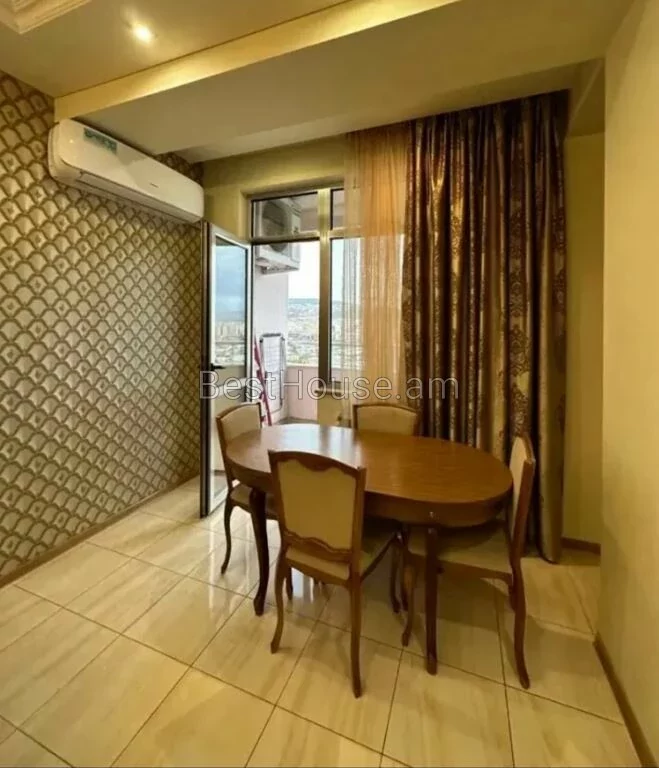 A beautiful, bright 3-room apartment is for rent in a newly built building, Tsitsernakaberd highway, 100 square meters, 2 bathrooms, the apartment is equipped with necessary property and appliances.