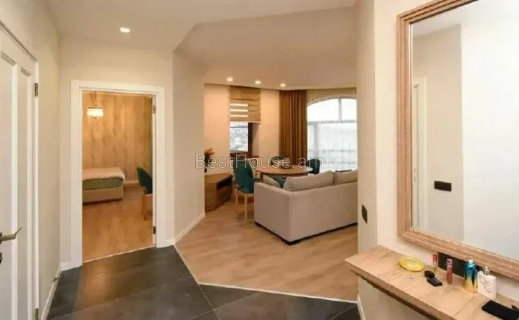 2-room apartment for rent in a newly built building, 60 square meters, the apartment renovated in designer style is equipped with necessary property and appliances.