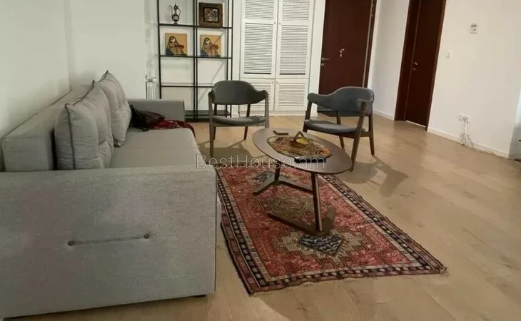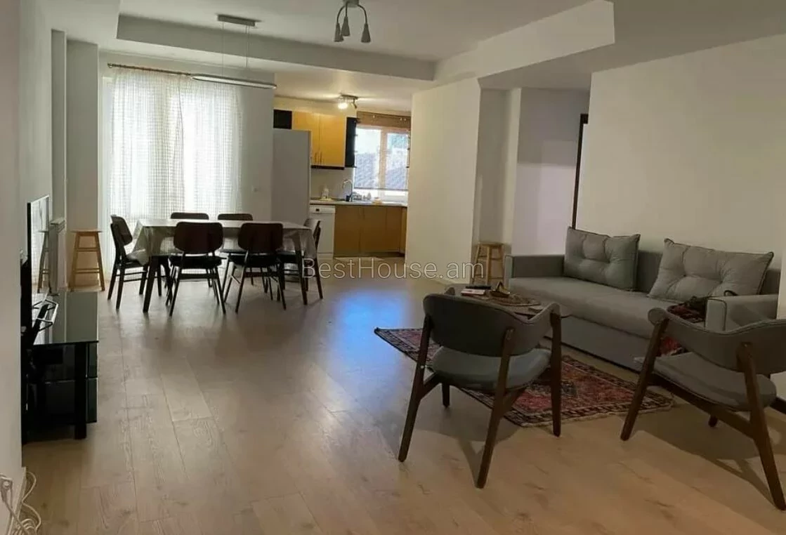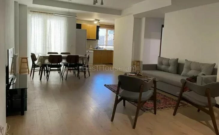 A beautiful, bright 3-room apartment is for rent in a newly built building on Arami street, 88 square meters, 2 bathrooms, the apartment is equipped with necessary furniture and appliances.