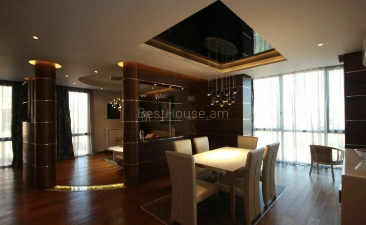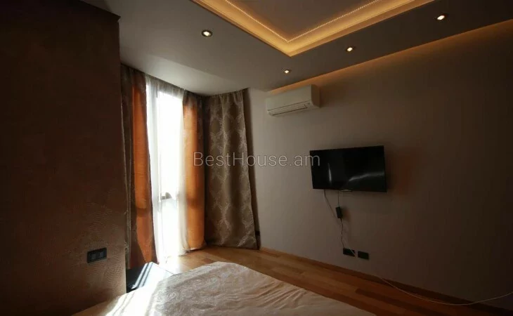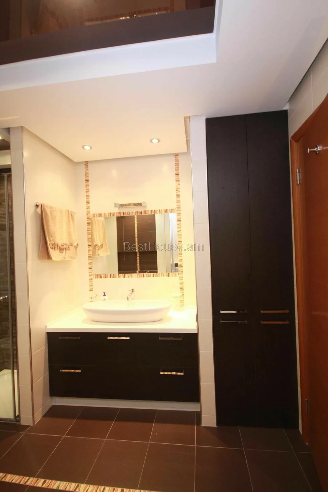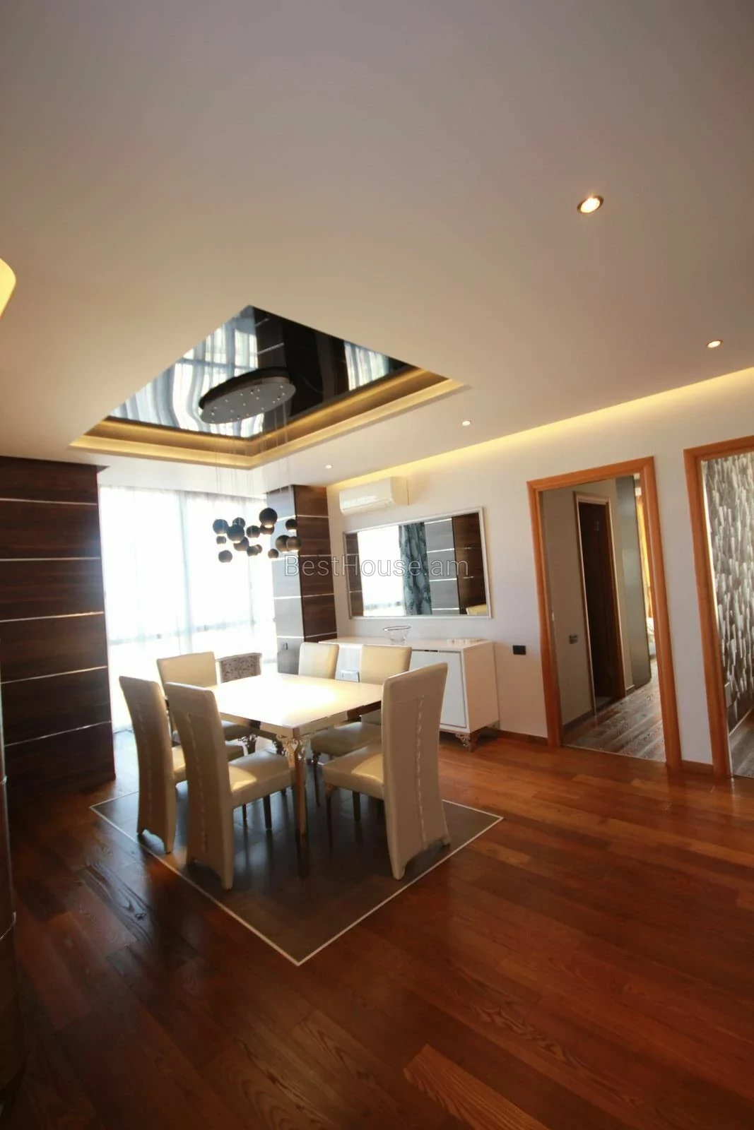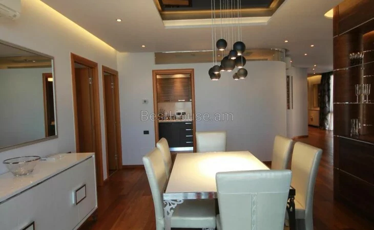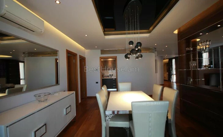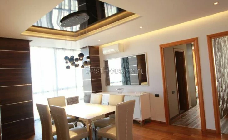 ...A spacious 3-room apartment with beautiful design and lighting is for rent in V. On Sargsyan Street, next to Republic Square, in one of the best elite buildings of the city. It is located on the 9th floor of a newly constructed 10-story building. The apartment is fully renovated according to the latest European standards. It is equipped with all utilities. Heating is individual, air conditioners are installed. There is an iron door, euro windows, the floor is covered with parquet. The kitchen and bathrooms are tiled, equipped with the necessary plumbing equipment. There is a gym, a sauna and a swimming pool in the building, as well as cafes, beauty centers and banks located on the first floor.