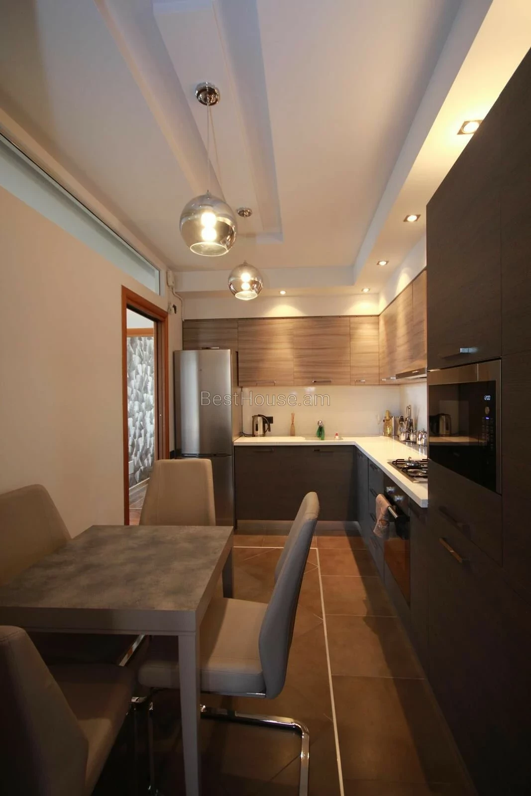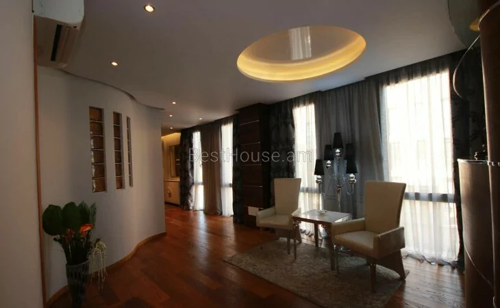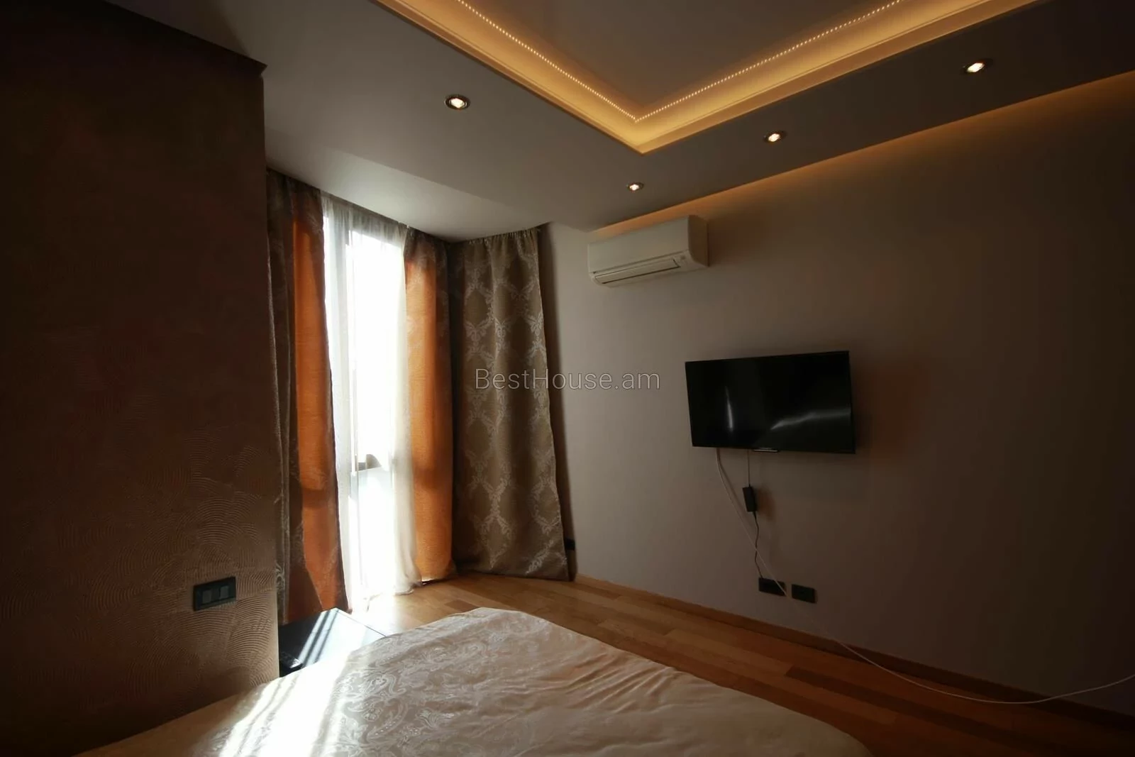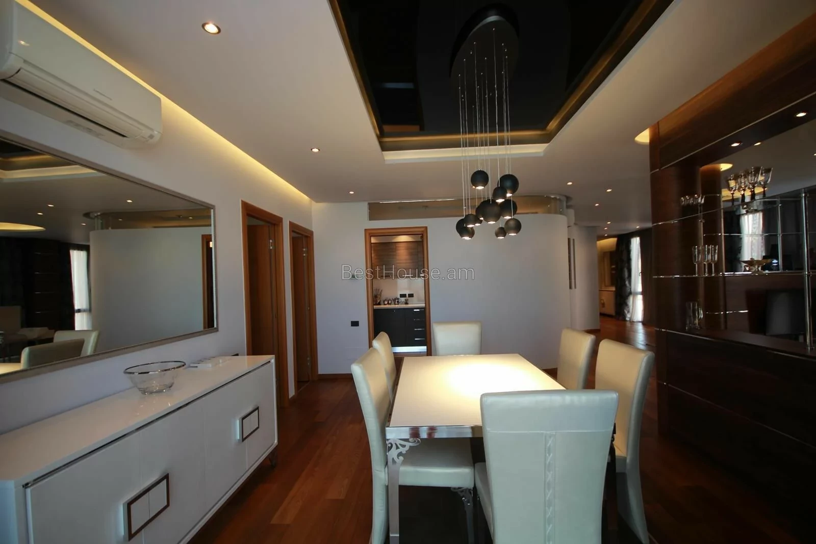 ...A spacious 3-room apartment with beautiful design and lighting is for rent in V. On Sargsyan Street, next to Republic Square, in one of the best elite buildings of the city. It is located on the 9th floor of a newly constructed 10-story building. The apartment is fully renovated according to the latest European standards. It is equipped with all utilities. Heating is individual, air conditioners are installed. There is an iron door, euro windows, the floor is covered with parquet. The kitchen and bathrooms are tiled, equipped with the necessary plumbing equipment. There is a gym, a sauna and a swimming pool in the building, as well as cafes, beauty centers and banks located on the first floor.