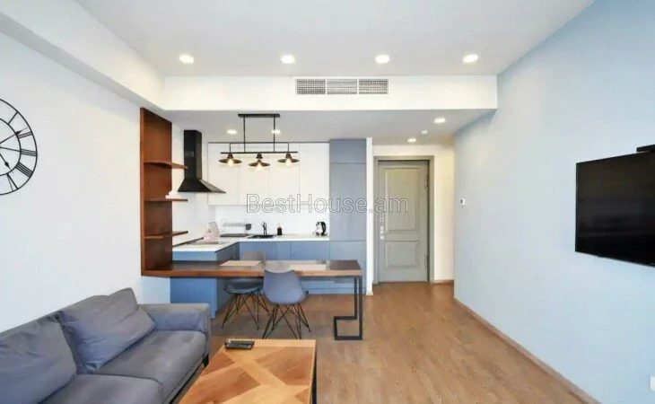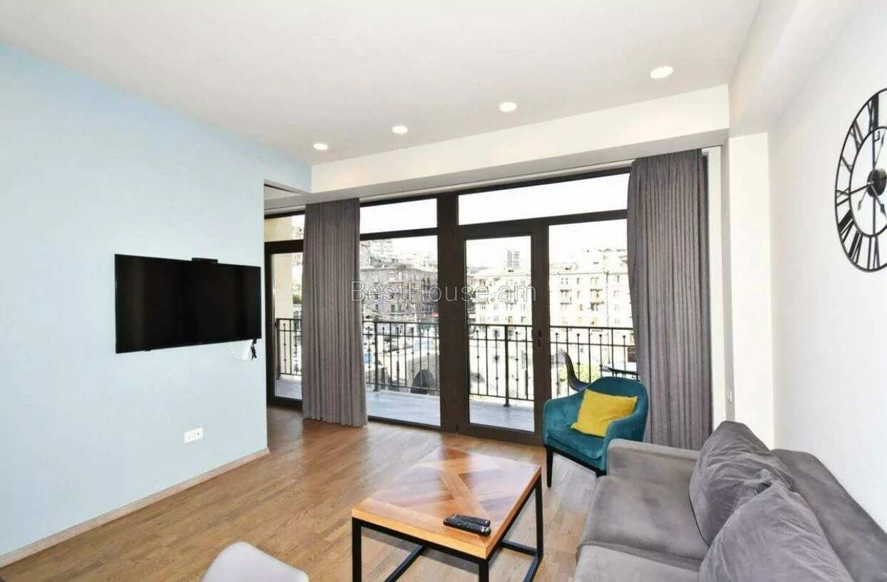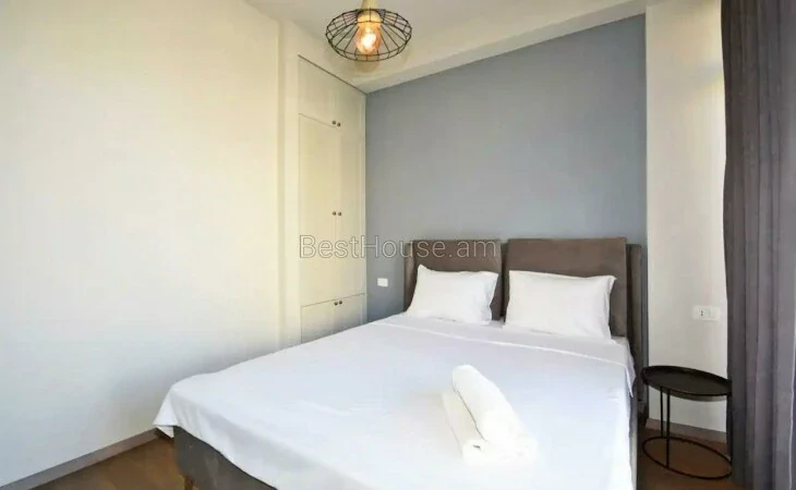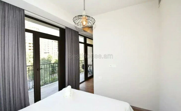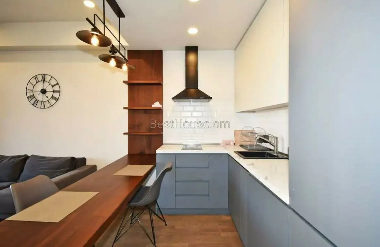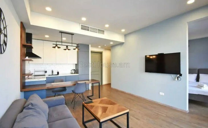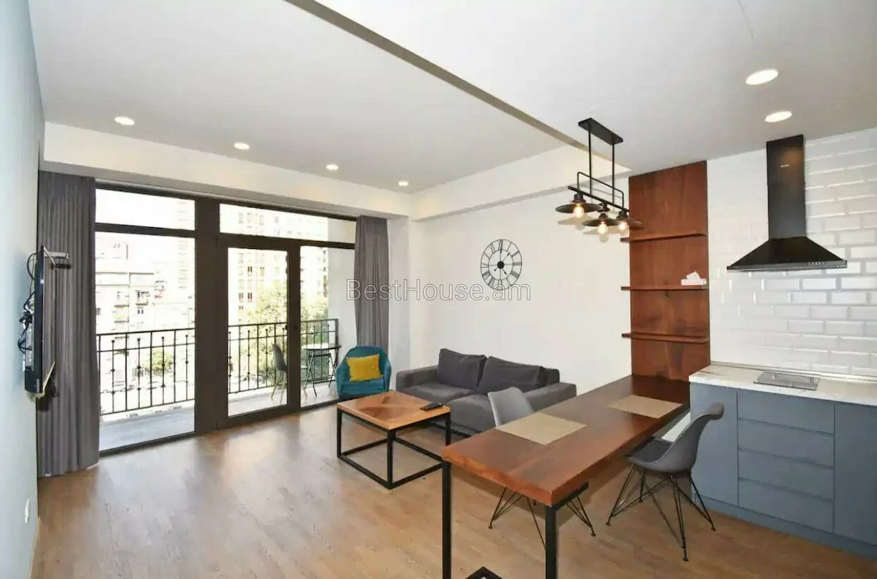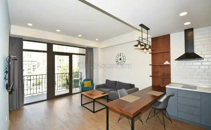 A 2-room designer-style renovated, sunny apartment, equipped with property and equipment, is for rent on Buzandi Street.